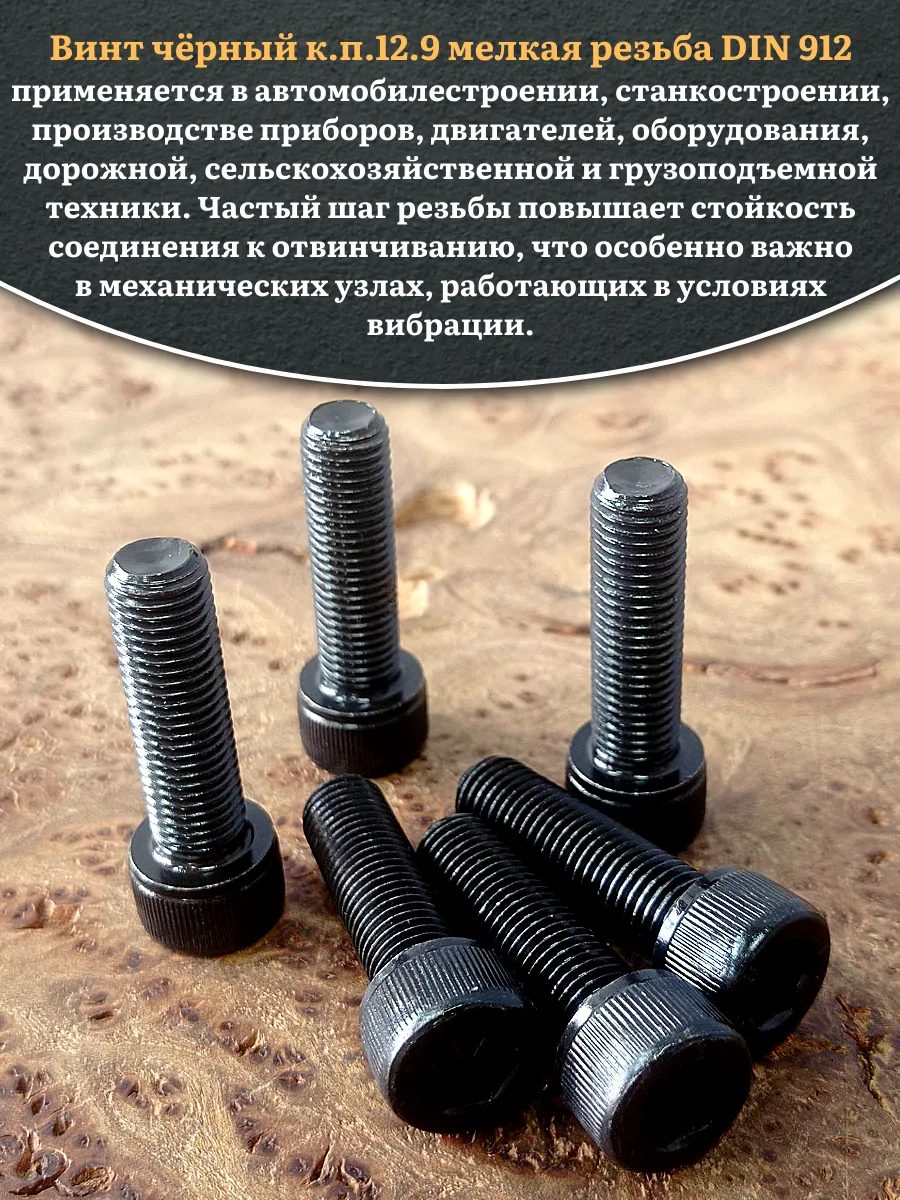 Винт мелкая резьба чёрный к.п.12.9 10х40х1 DIN912, 10 шт. 2000000642574ф10 1 шт.