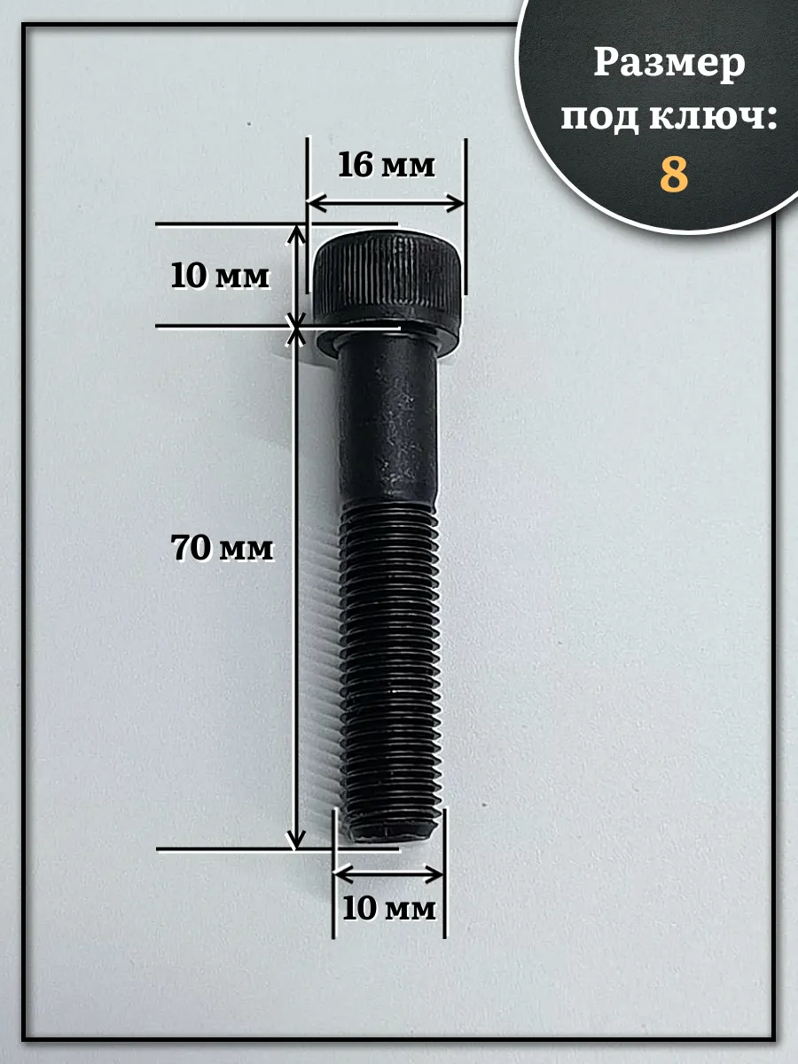 Винт мелкая резьба чёрный к.п.12.9 10х70х1,25 DIN912, 10 шт.