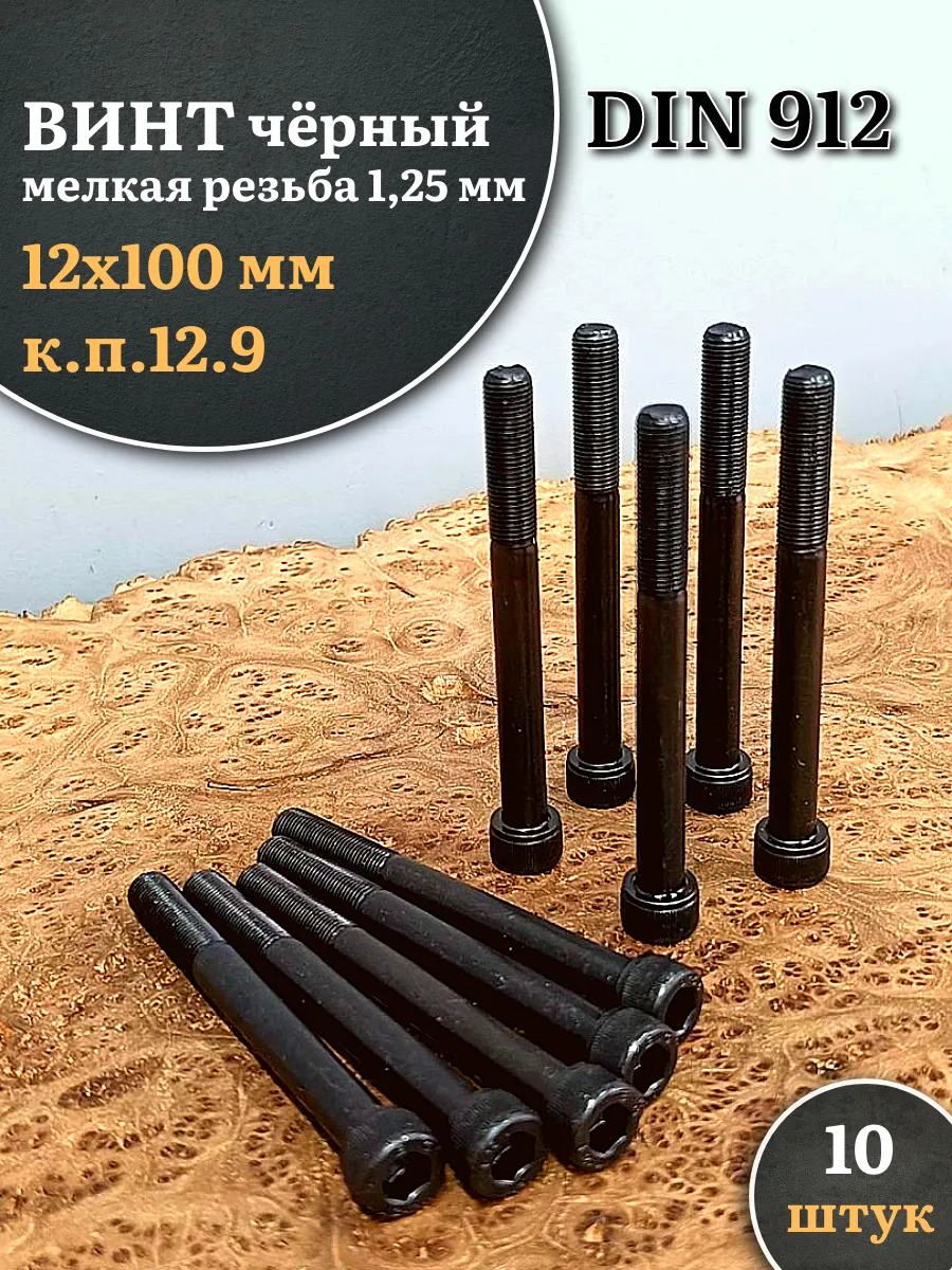 Винт мелкая резьба чёрный к.п.12.9 12х100х1,25 DIN912, 10 шт.