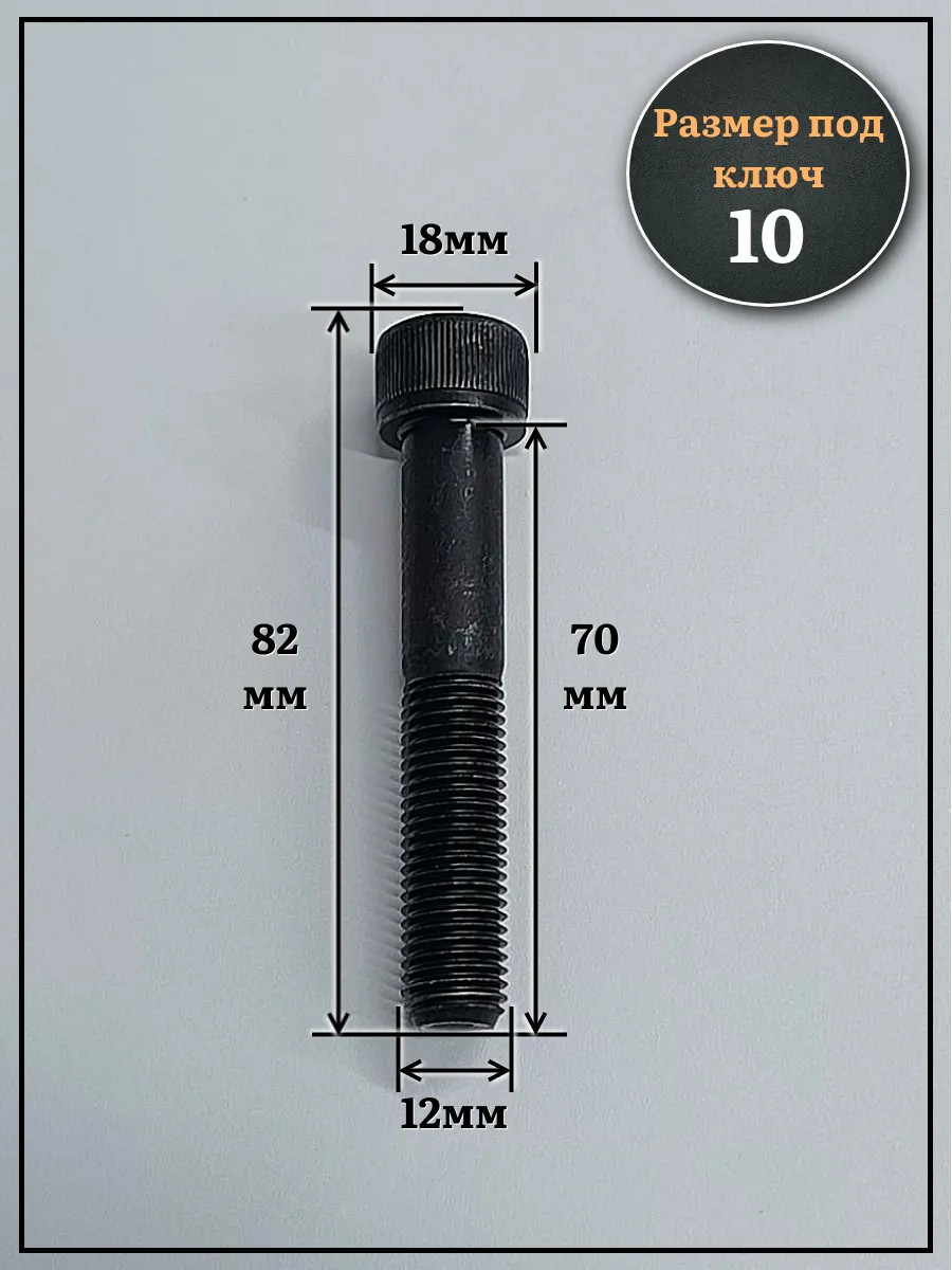 Винт мелкая резьба чёрный к.п.12.9 12х70х1,5 DIN912, 10 шт.