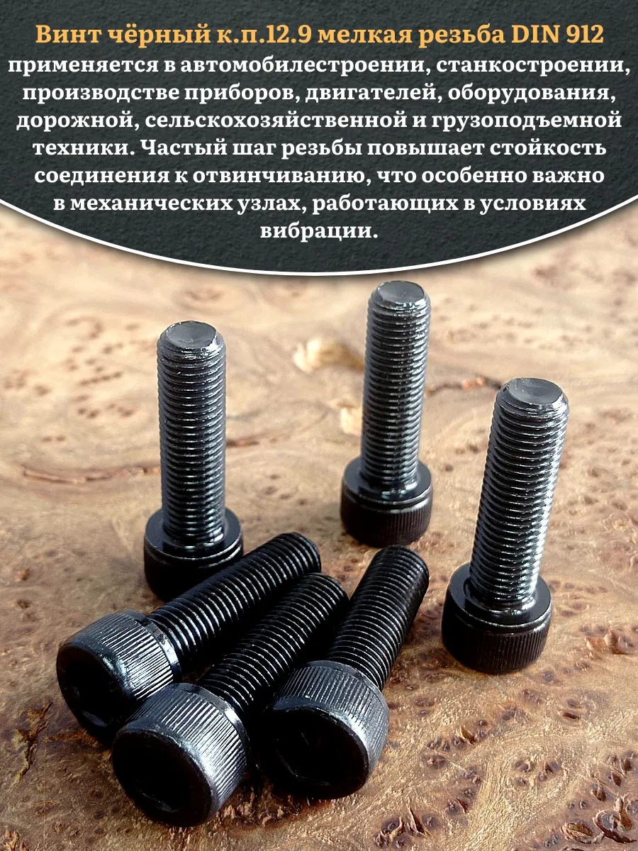 Винт мелкая резьба чёрный к.п.12.9 14х40х1,5 DIN912, 10 шт.