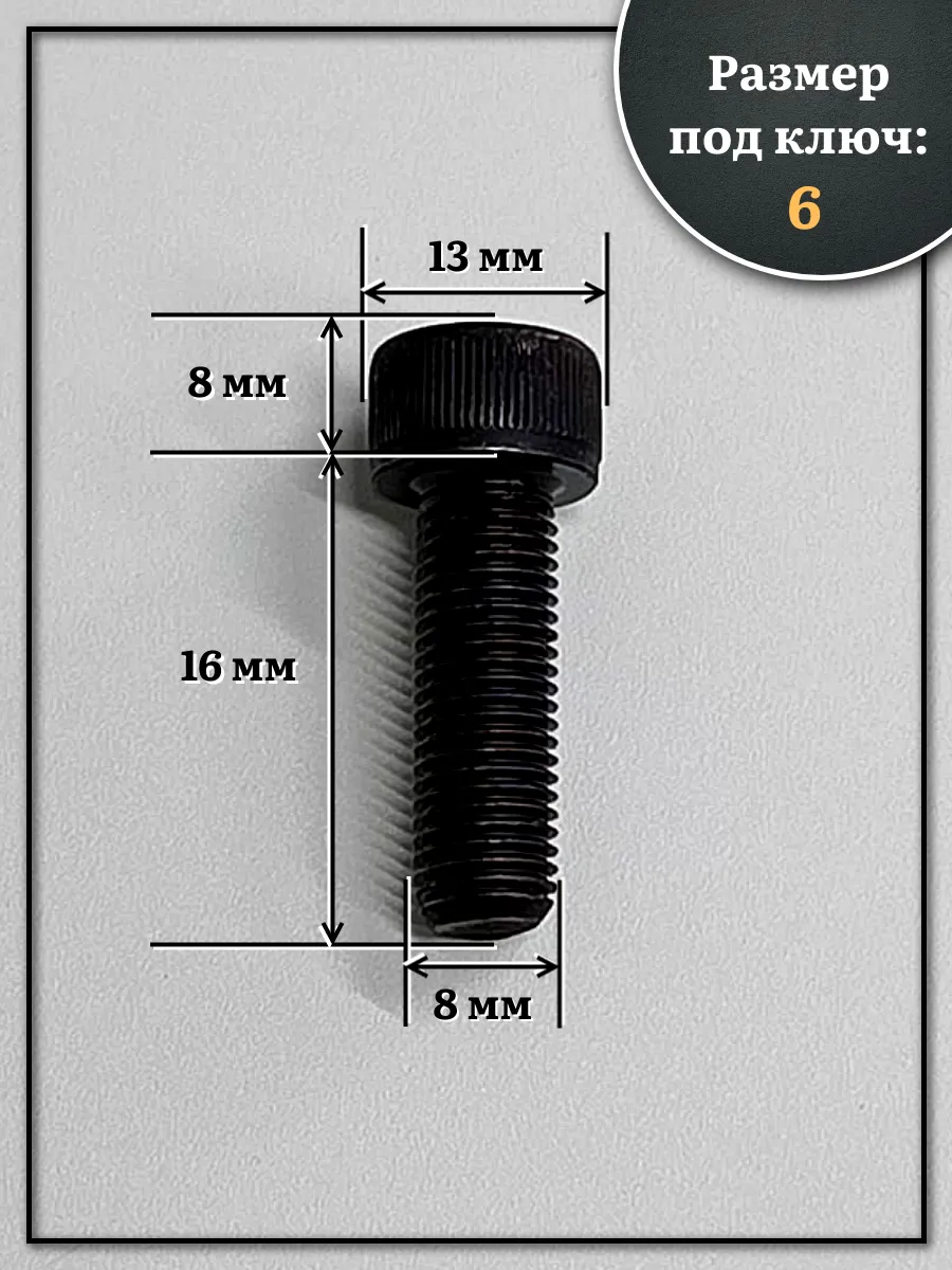 Винт мелкая резьба чёрный к.п.12.9 8х16х1 DIN912, 10 шт. 2000000642345ф10 1 шт.