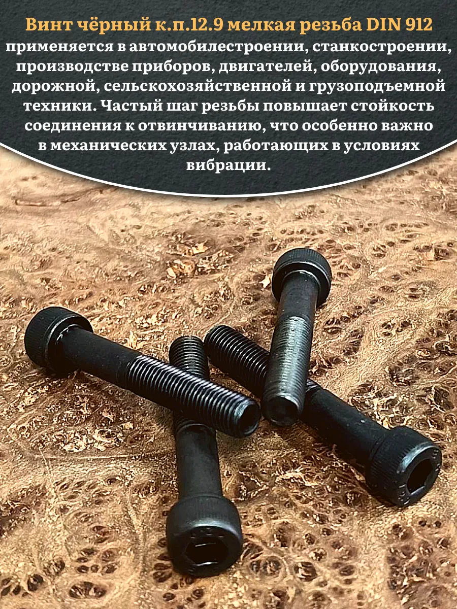 Винт мелкая резьба чёрный к.п.12.9 8х60х1 DIN912, 20 шт.