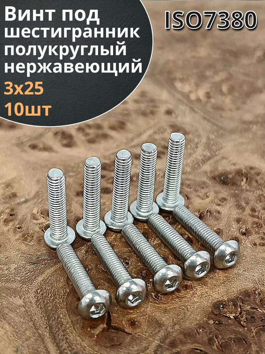 Винт нержавеющий под шестигранник 3х25 мм 7380 ,10 шт.