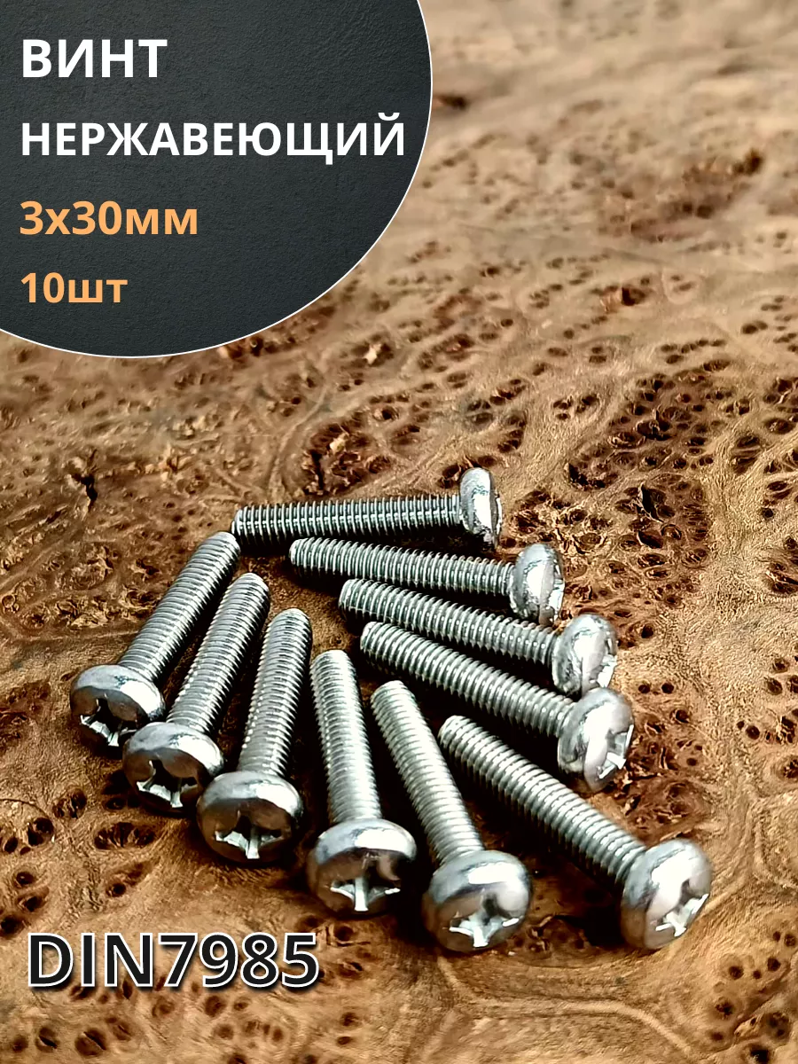 Винт нержавеющий 3х30 мм РН DIN7985, 10 шт.