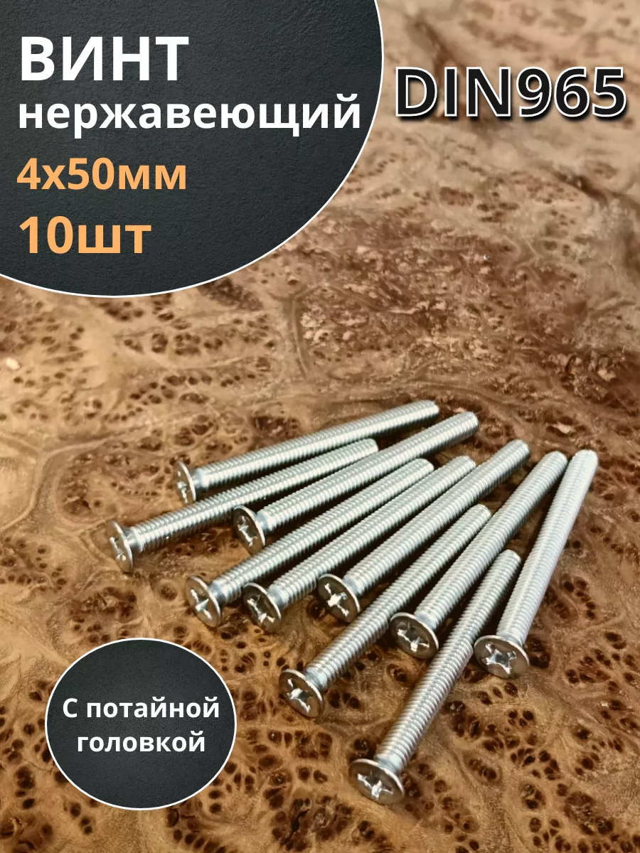 Винт нержавеющий 4х50 мм DIN 965 с потайной головкой ,10 шт