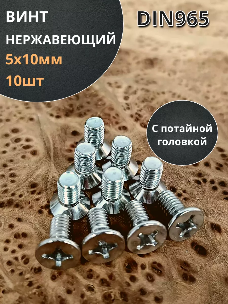 Винт нержавеющий 5х10 мм DIN 965 с потайной головкой ,10 шт