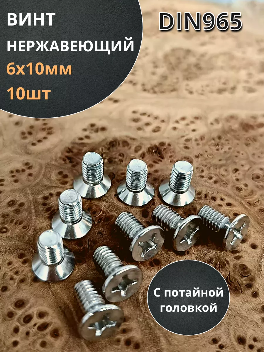 Винт нержавеющий 6х10 мм DIN 965 с потайной головкой ,10 шт