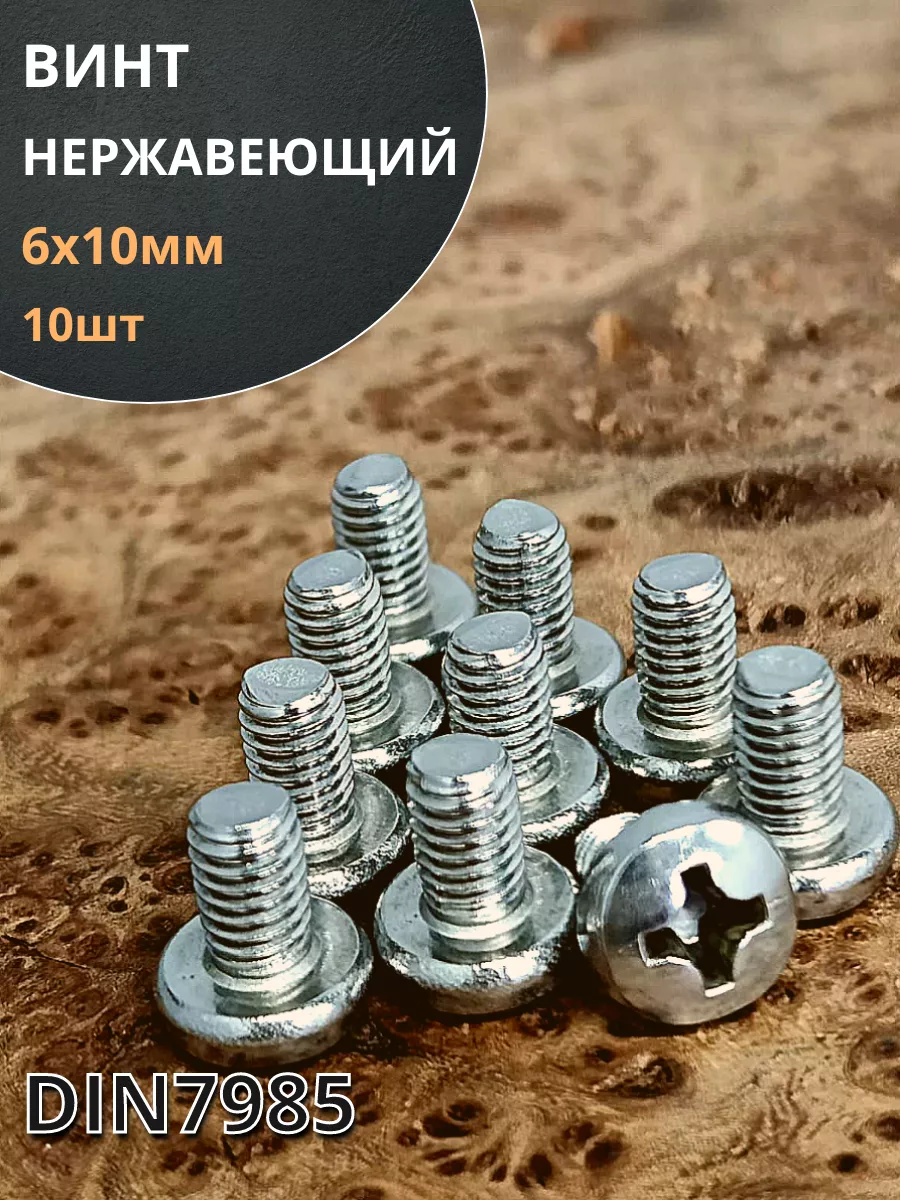 Винт нержавеющий 6х10 мм РН DIN7985 , 10 шт.