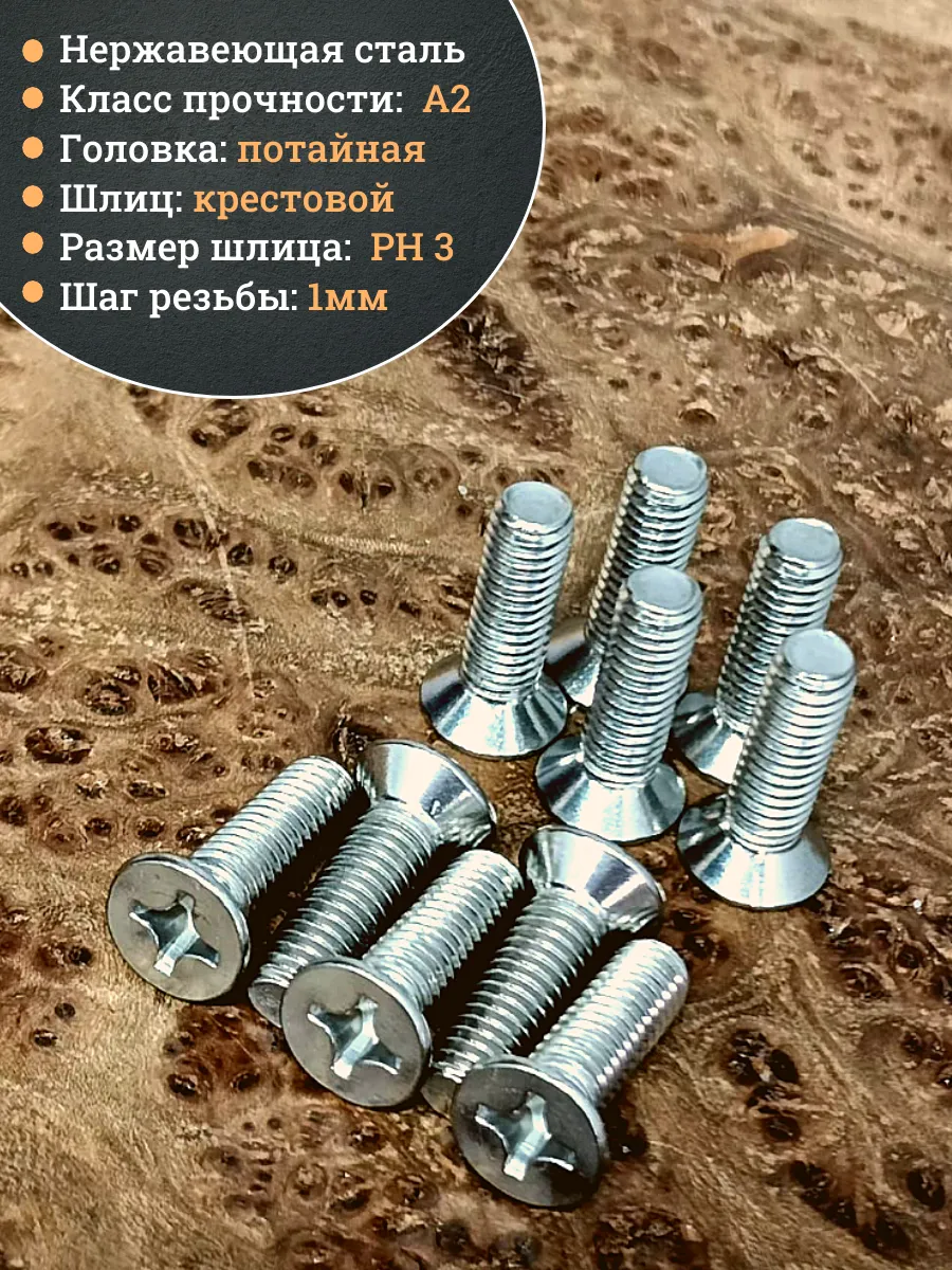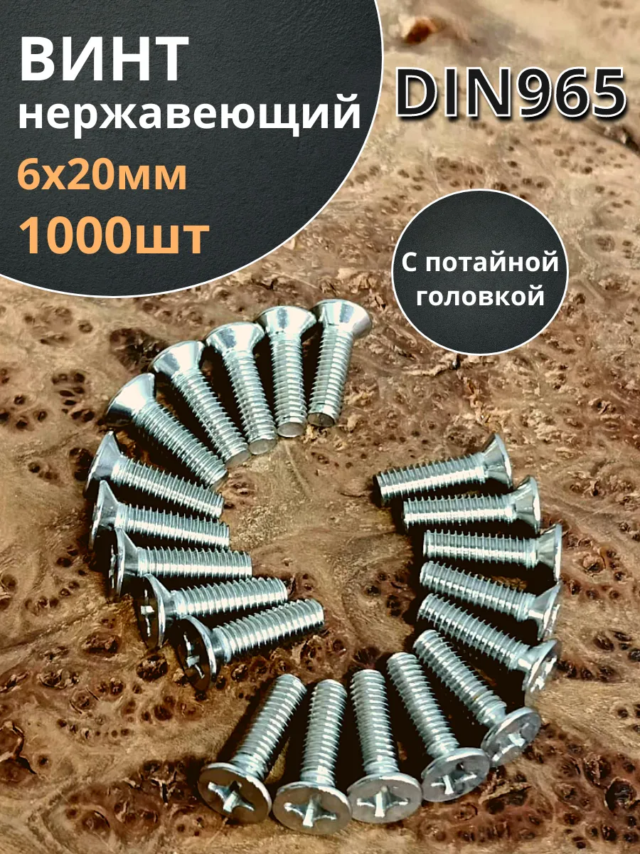 | Винт нержавеющий 6х20 мм DIN 965 потайной головкой 50 шт. | АС9500602094007ф50 | 1 шт. |