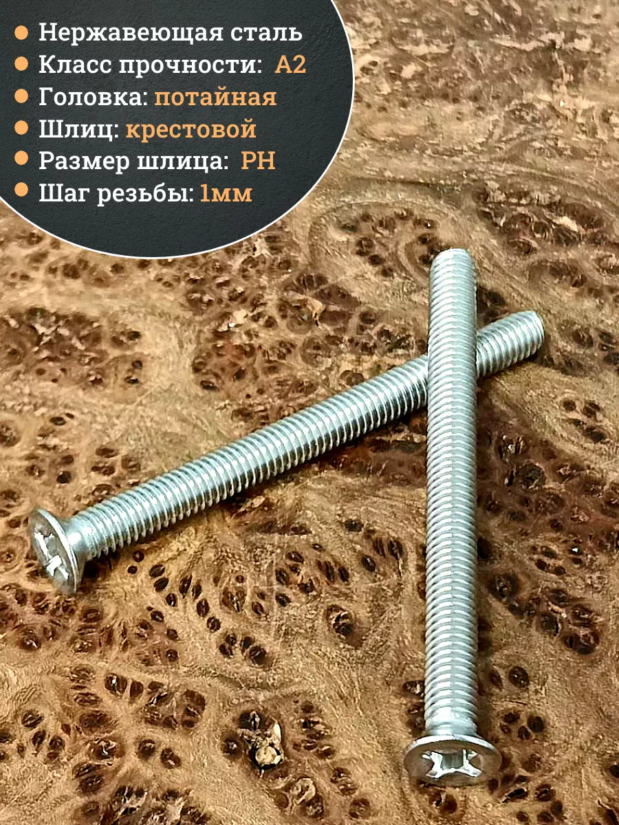 Скрепляет детали корпусов, двигателей, агрегатов, приборов. Широко используется при автоматической конвейерной сборке оборудования. Нержавеющая сталь А2 предопределяет его использование в агрегатах для пищевой отрасли, в холодильных установках, уличных приборах. Винт потайной с крестообразным шлицем DIN 965 PH (ISO 7046) – крепеж из нержавеющей стали А2, предназначенный для создания прочных коррозиестойких соединений металлических элементов конструкций и для крепления неметаллических листовых материалов к основанию из металла. Он сочетает отличные антикоррозийные свойства с высокой механической прочностью и износостойкостью, при этом не окисляется на воздухе, не боится влаги, критически высоких и низких температур.