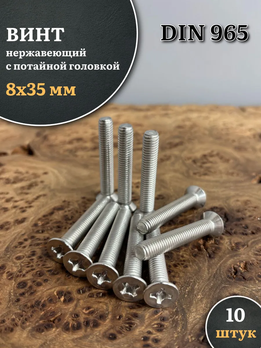Винт нержавеющий 8х35 мм DIN965 с потайной головкой ,10 шт