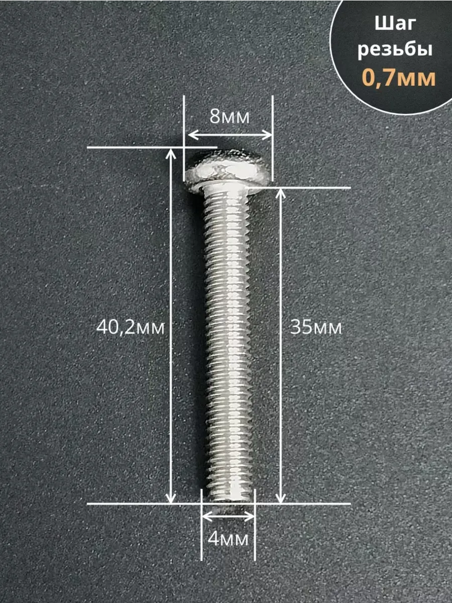 Винт нержавеющий с гайкой и шайбой 4х35 мм DIN7985, 10 шт.