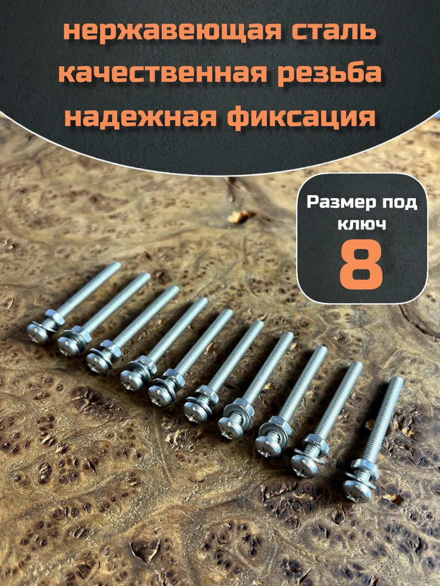 Винт нержавеющий с гайкой и шайбой 5х30 мм DIN7985, 10 шт.