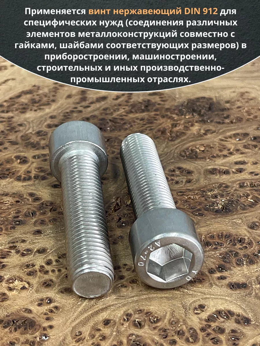 Винт нержавеющий шестигранник М16х70 DIN 912, 4 шт.