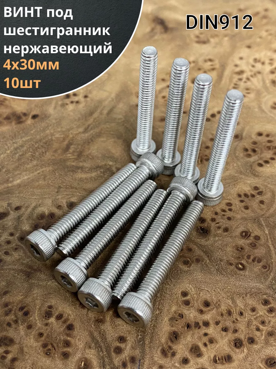 Винт нержавеющий шестигранник М4х30, DIN 912, 10 шт