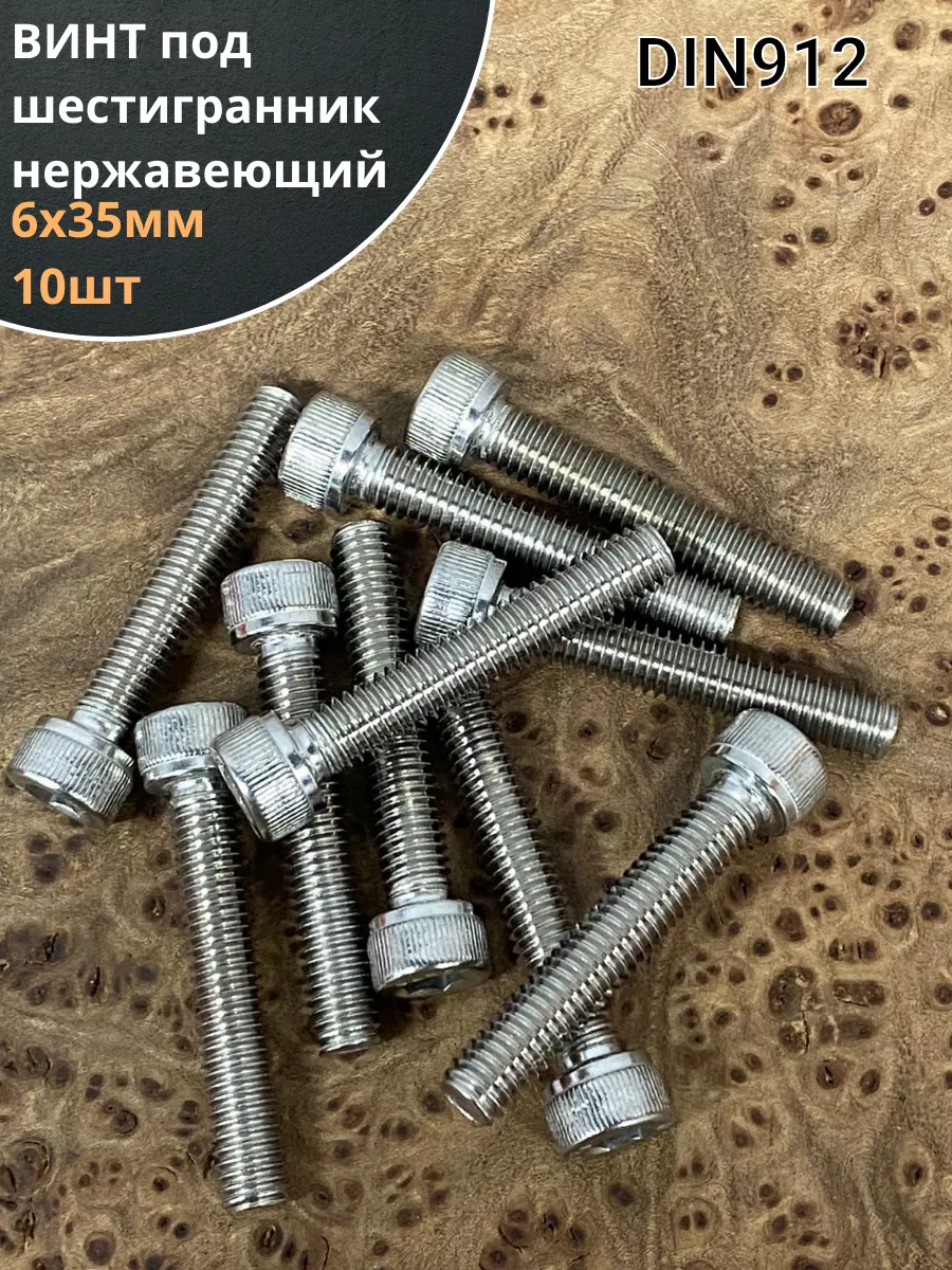 Винт нержавеющий шестигранник М6х35, DIN 912, 10 шт