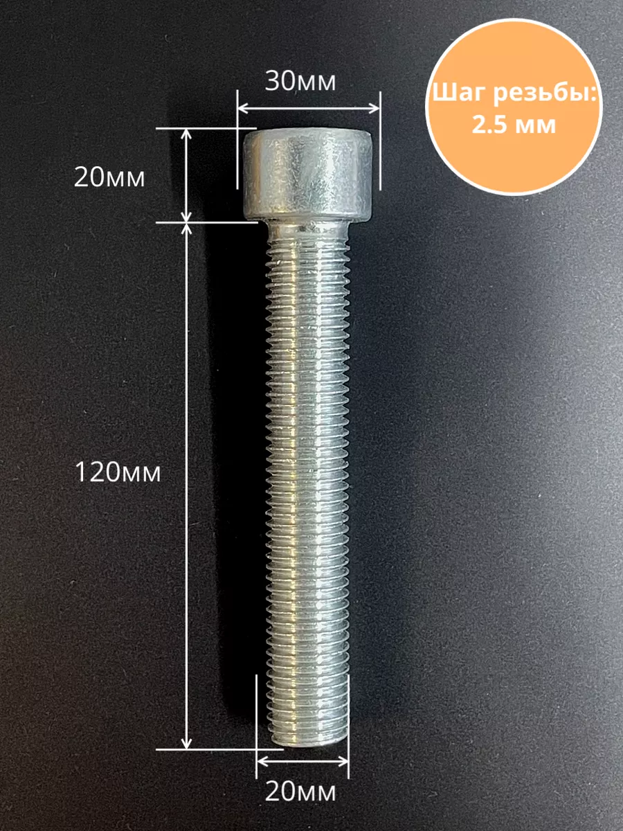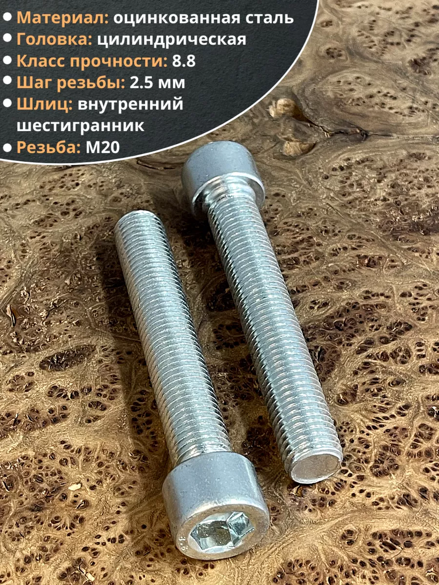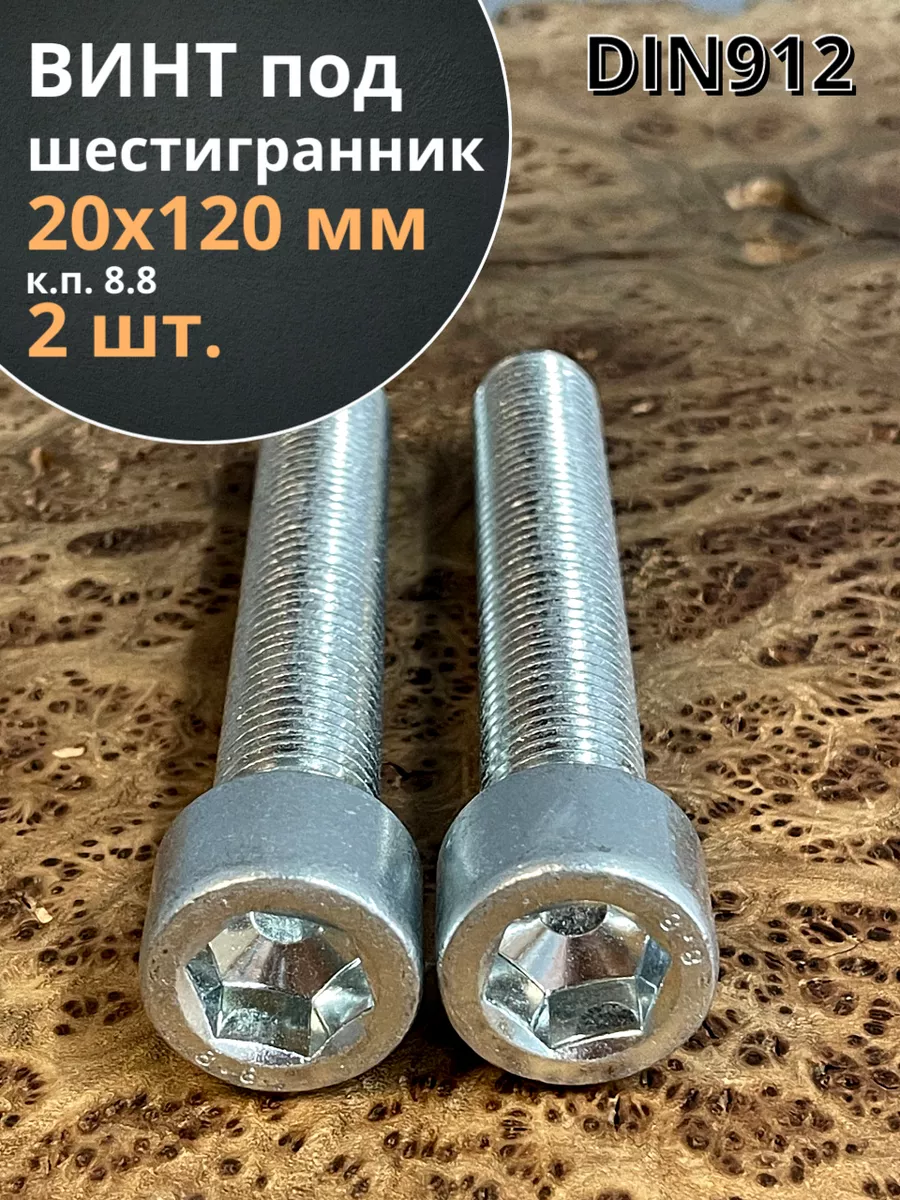 Винт под шестигранник ПР 20х120 мм ОЦ к.п.8.8 DIN912, 2 шт.