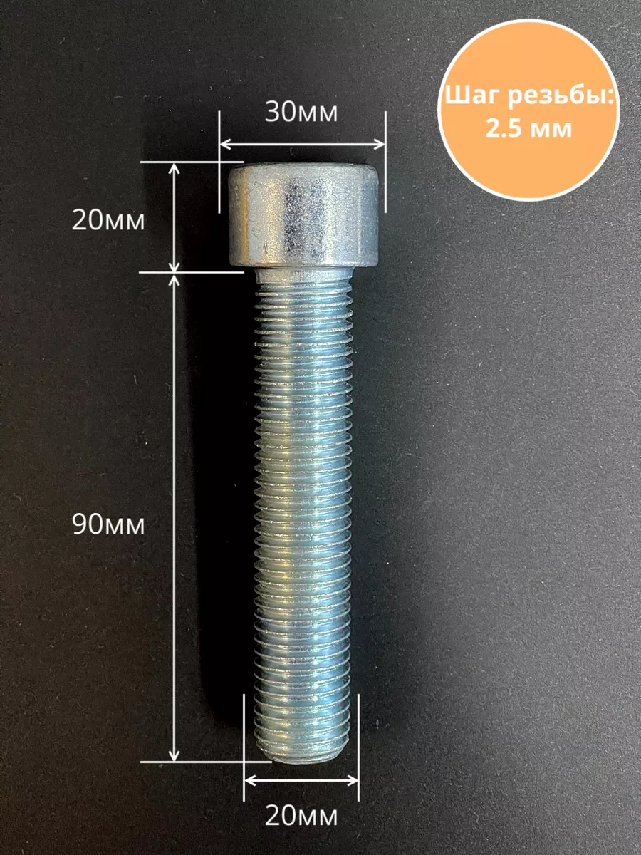 Винт под шестигранник ПР 20х90 мм ОЦ к.п.8.8 DIN912, 2 шт.