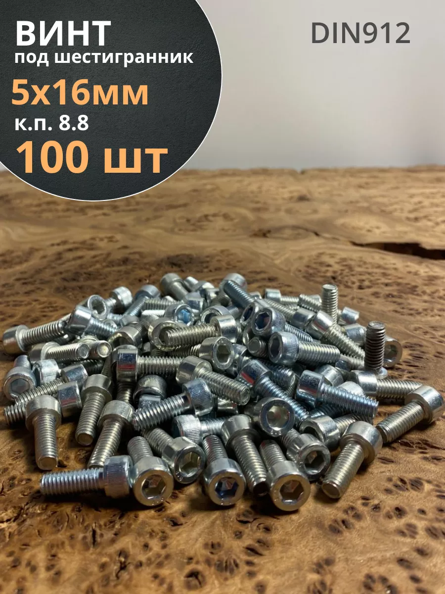 Винт под шестигранник ПР 5х16 мм ОЦ к.п.8.8 DIN912, 100 шт.