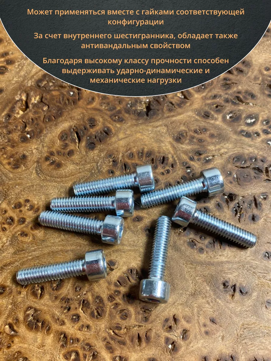 Винт DIN 912 представляет собой металлический стержень с метрической резьбой и головкой цилиндрической формы. Изготовляется из разных материалов, в зависимости от области его применения: сталь 8.8,10.9 или 12,9, сталь с оцинкованным покрытием, нержавеющая сталь А2- А5, латунь, пластик. Прочность на разрыв стали подобного класса достаточно высока, поэтому DIN 912 применяют в конструкциях, которые подвержены серьезным нагрузкам. Применяется винт DIN 912 для специфических нужд (соединения различных элементов металлоконструкций совместно с гайками, шайбами соответствующих размеров) в приборостроении, машиностроении, строительных и иных производственно-промышленных отраслях.