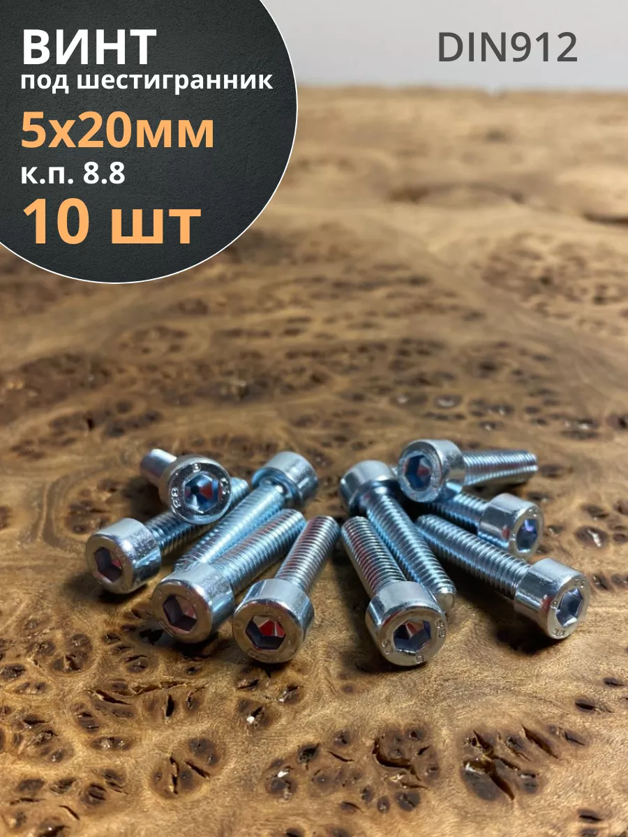 Винт под шестигранник ПР 5х20 мм ОЦ к.п.8.8 DIN912, 10 шт.