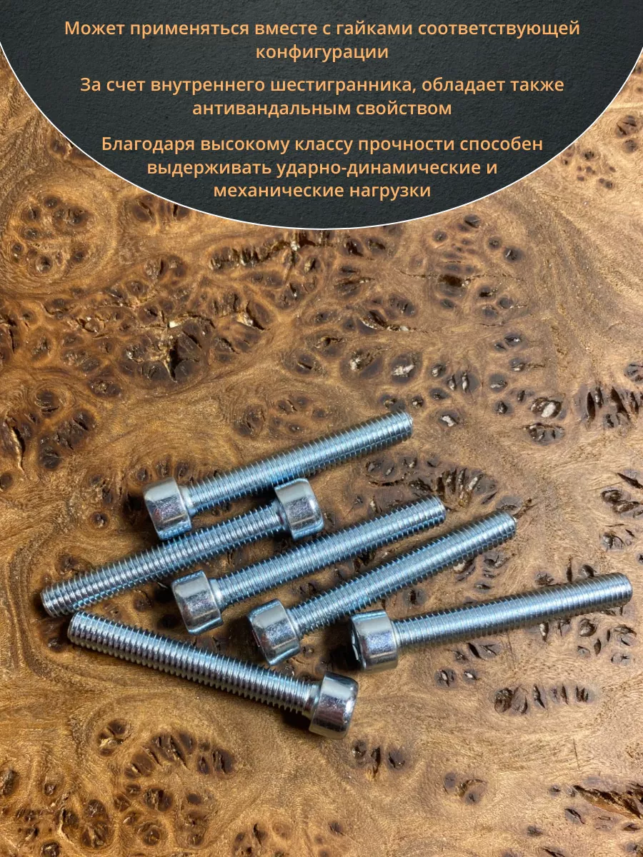 Винт DIN 912 представляет собой металлический стержень с метрической резьбой и головкой цилиндрической формы. Изготовляется из разных материалов, в зависимости от области его применения: сталь 8.8,10.9 или 12,9, сталь с оцинкованным покрытием, нержавеющая сталь А2- А5, латунь, пластик. Прочность на разрыв стали подобного класса достаточно высока, поэтому DIN 912 применяют в конструкциях, которые подвержены серьезным нагрузкам. Применяется винт DIN 912 для специфических нужд (соединения различных элементов металлоконструкций совместно с гайками, шайбами соответствующих размеров) в приборостроении, машиностроении, строительных и иных производственно-промышленных отраслях.