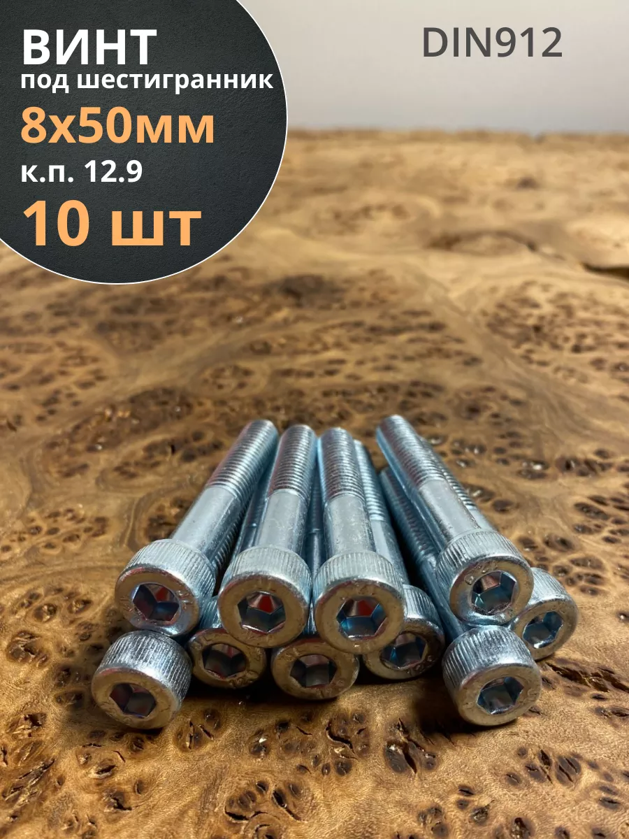 Винт высокопрочный НР 8х50 мм ОЦ к.п.12.9 DIN912, 10 шт.