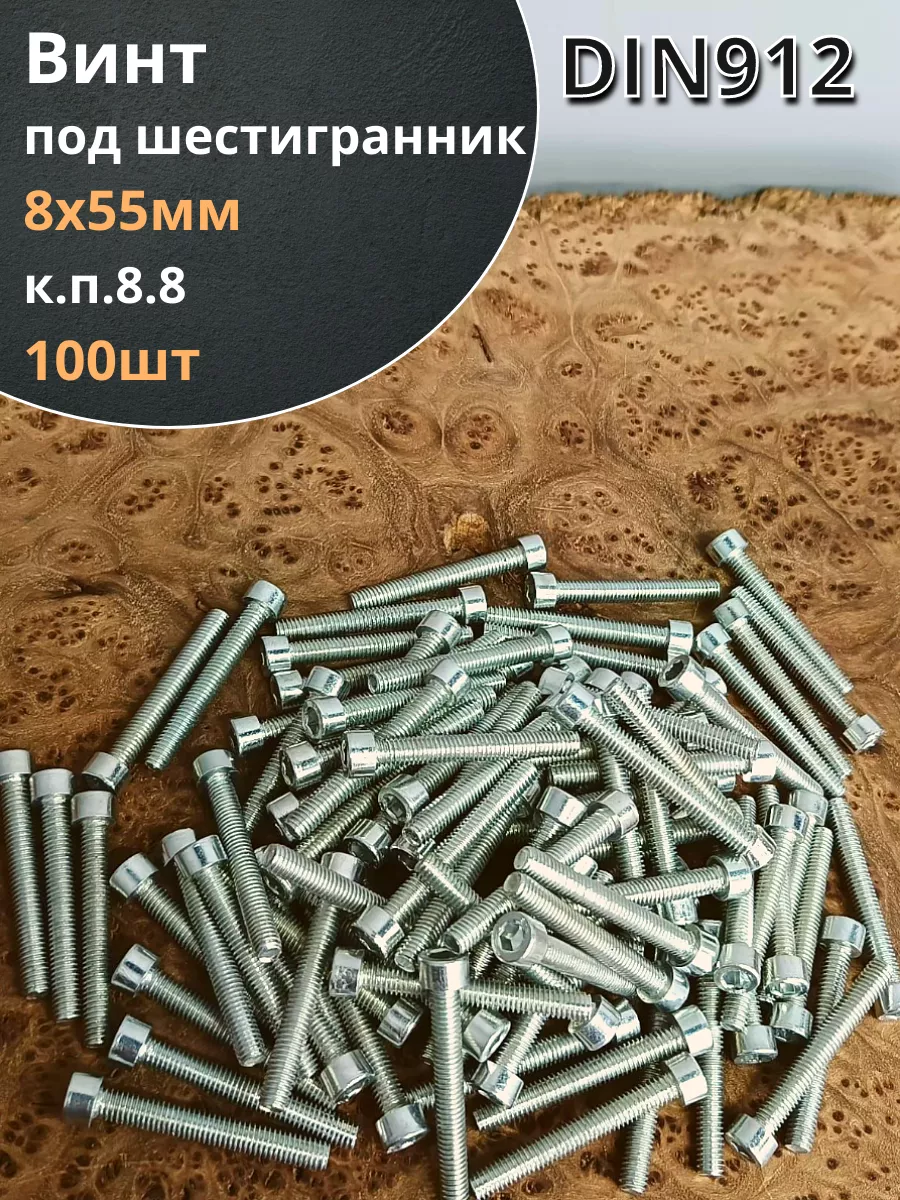 Винт под шестигранник ПР 8х55 мм ОЦ к.п.8.8 DIN912, 100 шт.