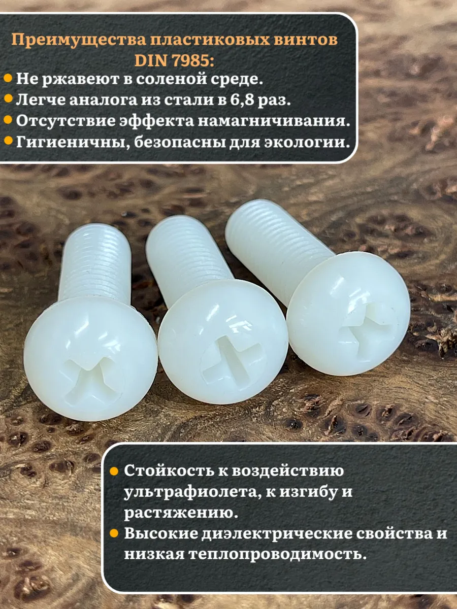 Винт полиамидный 10х30 мм DIN7985 (пластик), 4 шт.