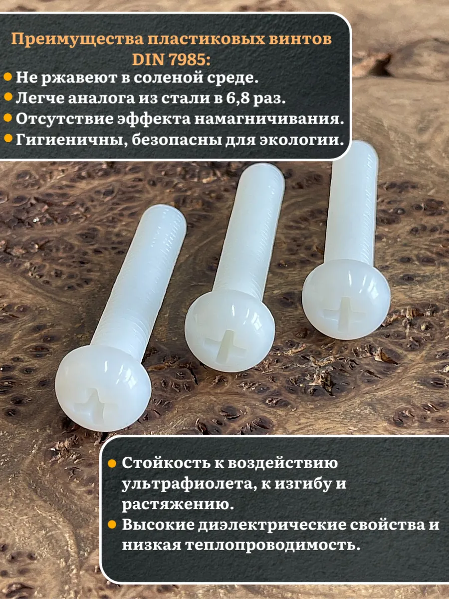 | Винт полиамидный 10х50 мм DIN7985 (пластик), 50 шт. | вп10507985ф50 | 1 шт. |