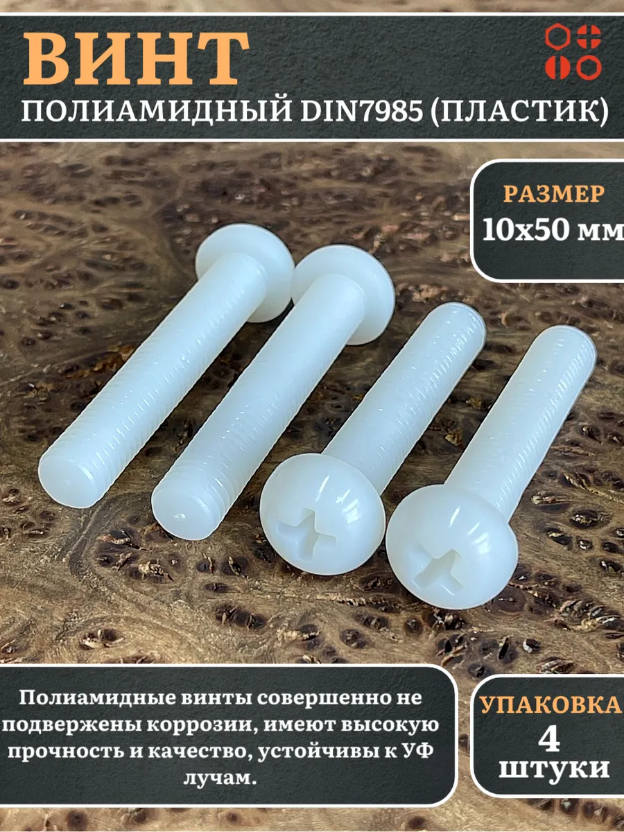 Винт полиамидный 10х50 мм DIN7985 (пластик), 4 шт.