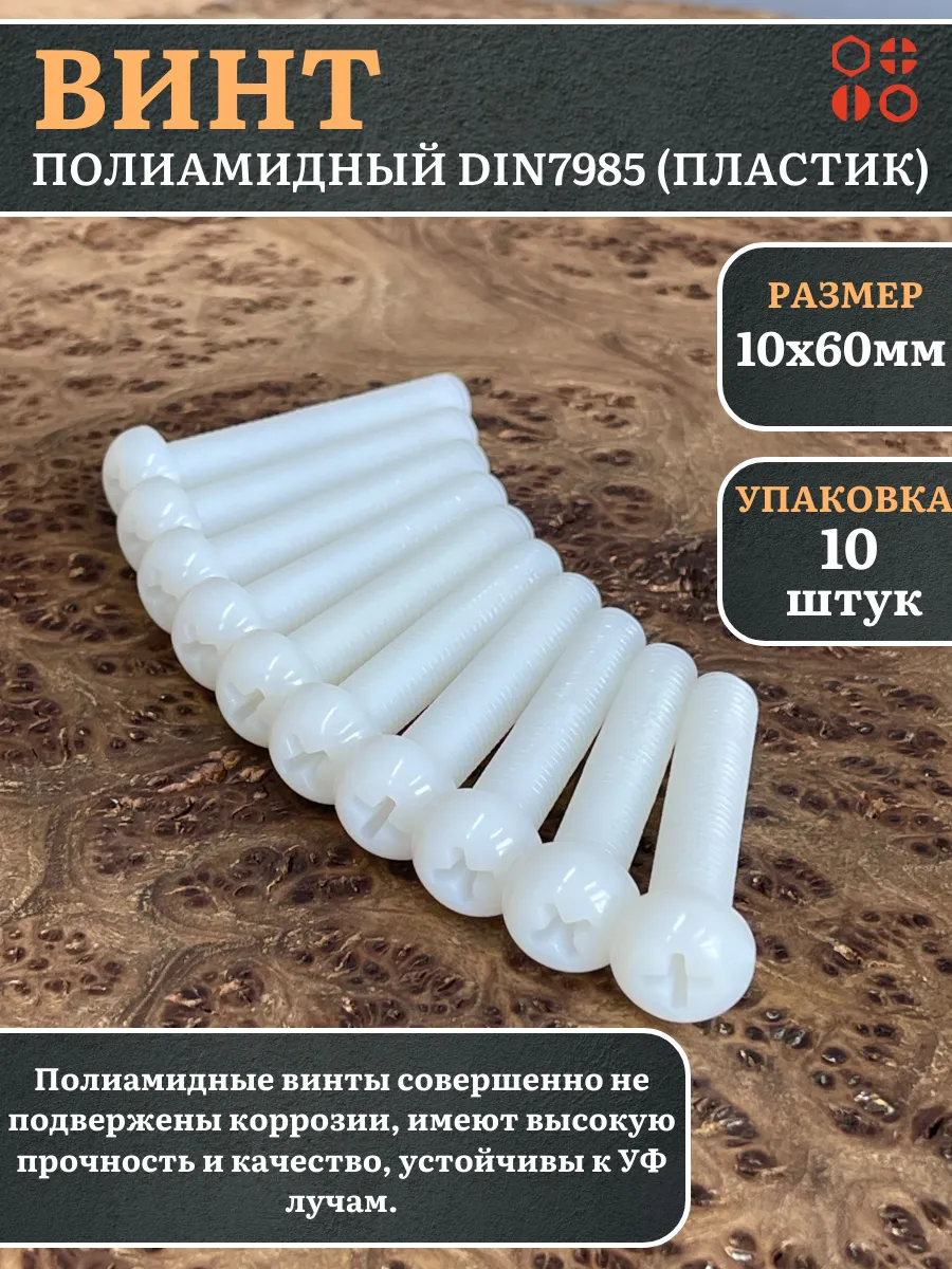 Винт полиамидный 10х60 мм DIN7985 (пластик), 50 шт. вп10607985ф50 1 шт.