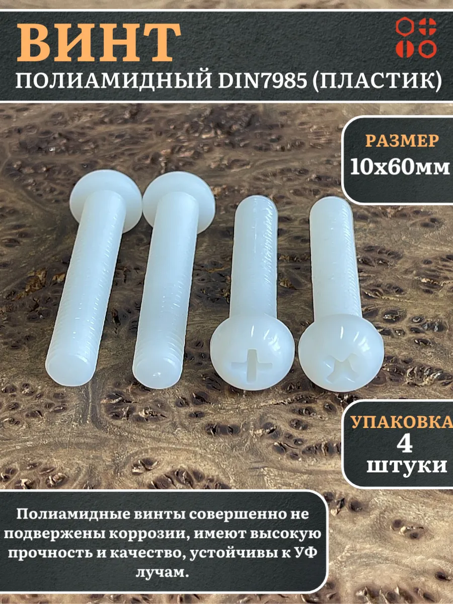 Винт полиамидный 10х60 мм DIN7985 (пластик), 4 шт.