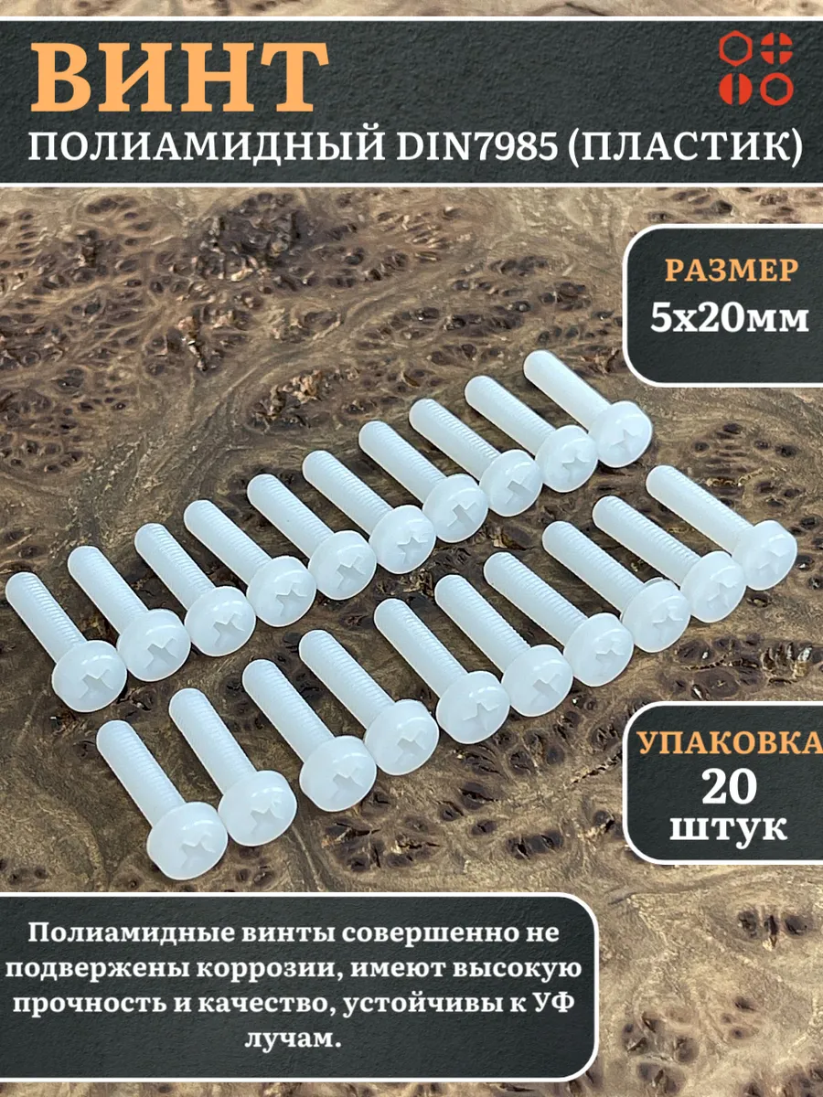 Винт полиамидный 5х20 мм DIN7985 (пластик), 50 шт. вп5207985ф50 1 шт.