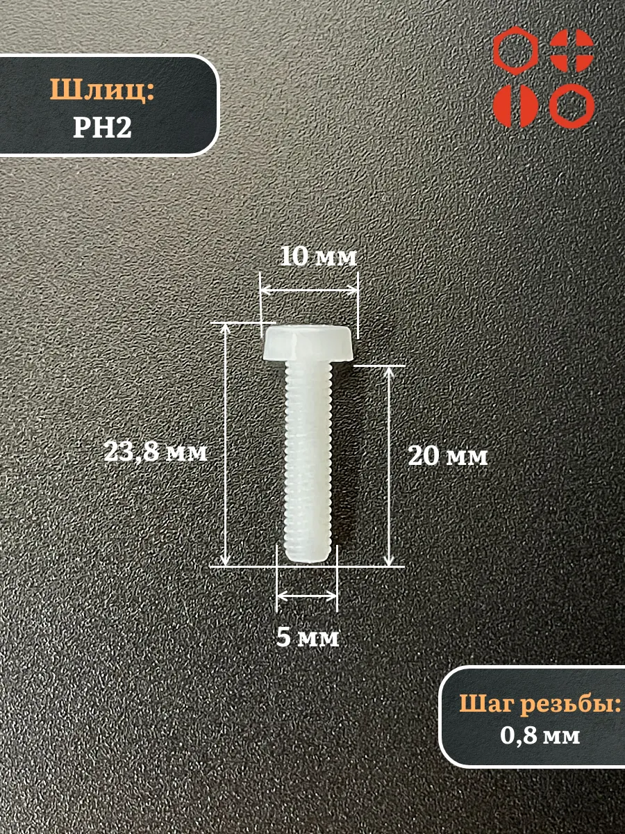 Винт полиамидный 5х20 мм DIN7985 (пластик), 10 шт. вп5207985ф10 1 шт.