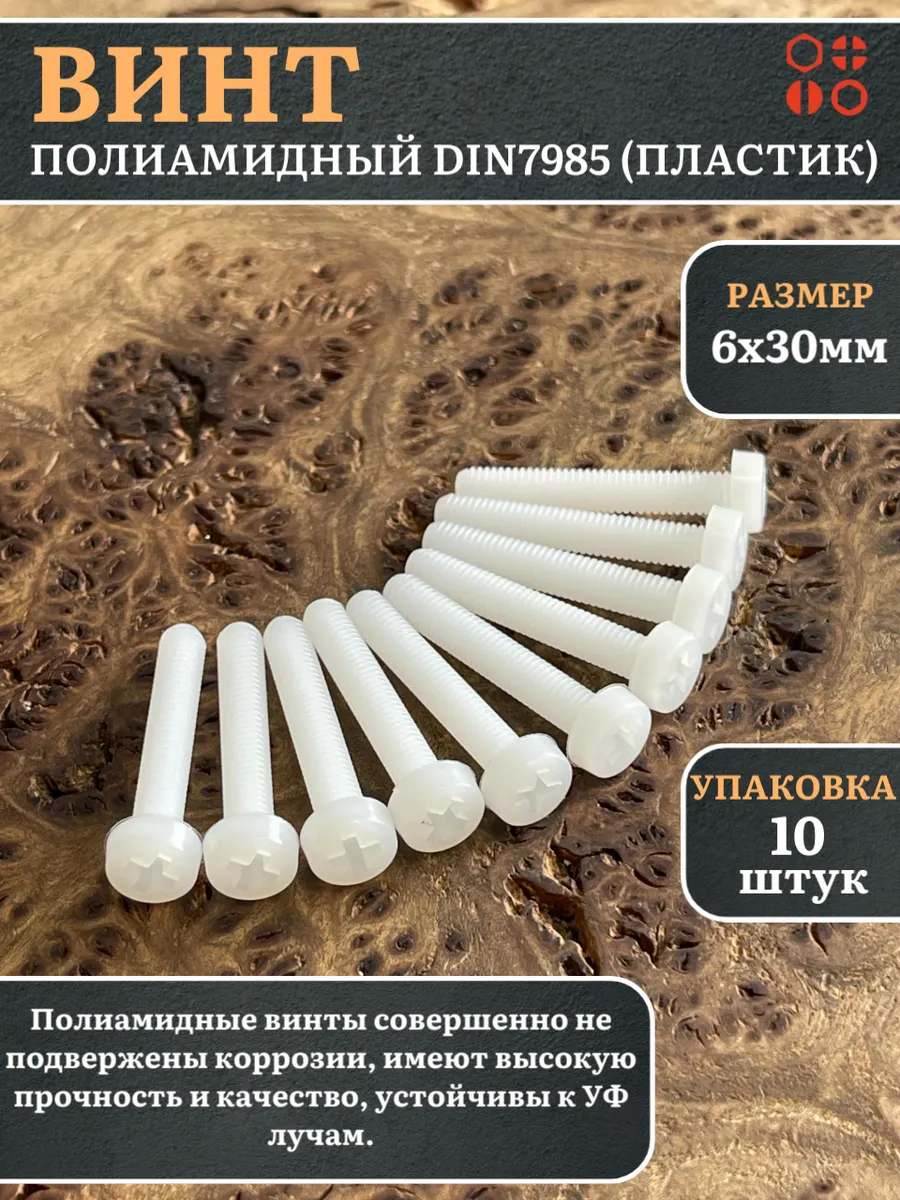 Винт полиамидный 6х30 мм DIN7985 (пластик), 10 шт.