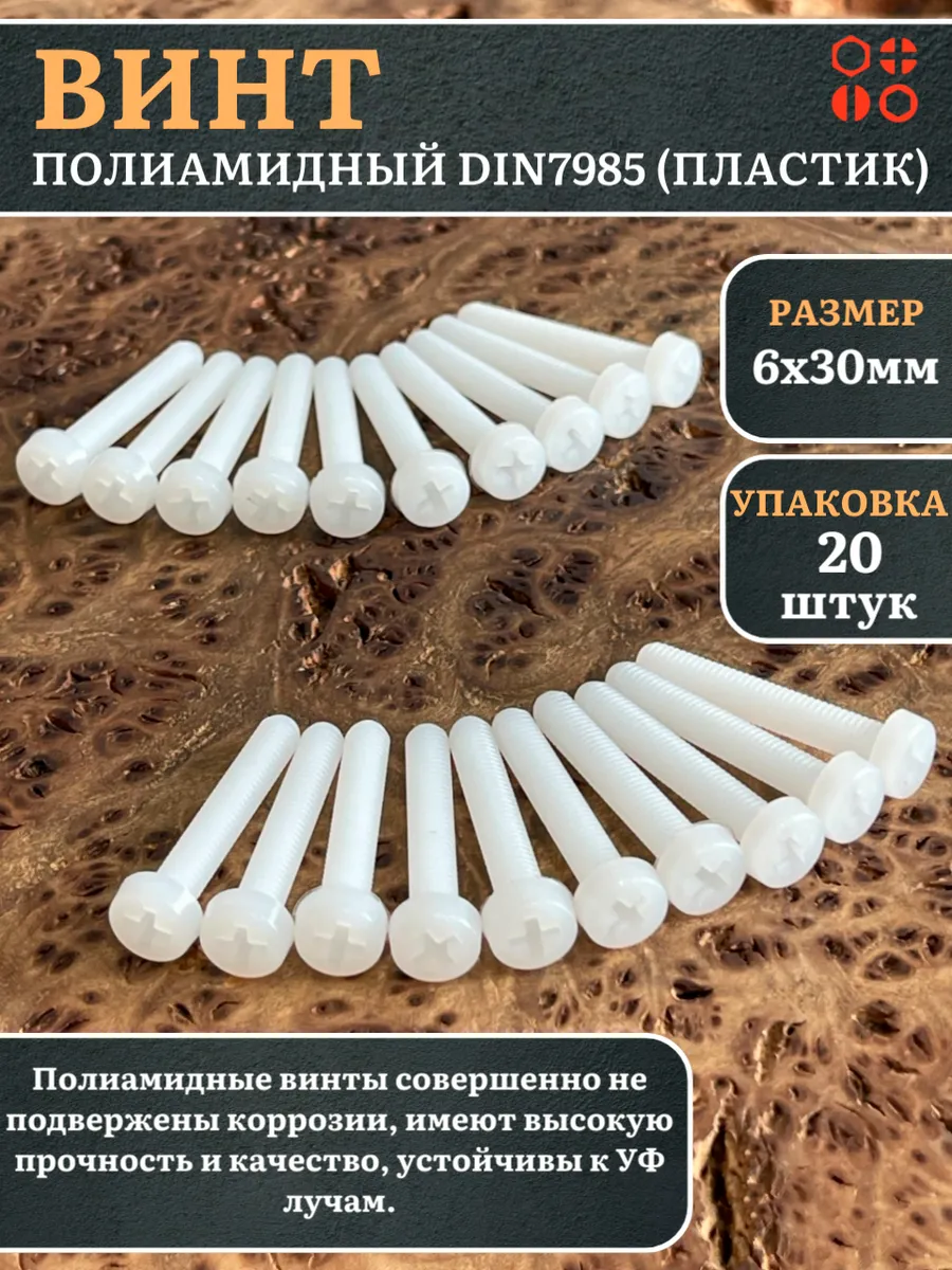 Винт полиамидный 6х30 мм DIN7985 (пластик), 20 шт.