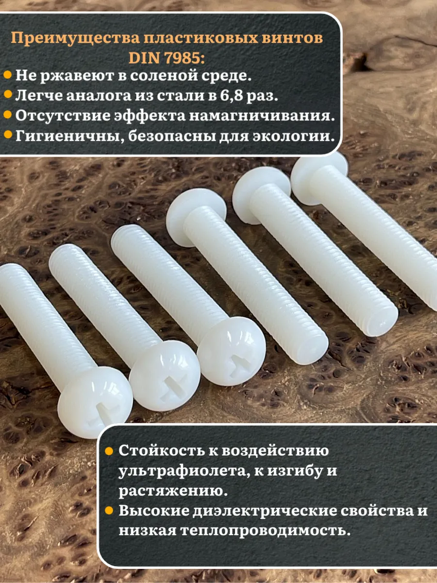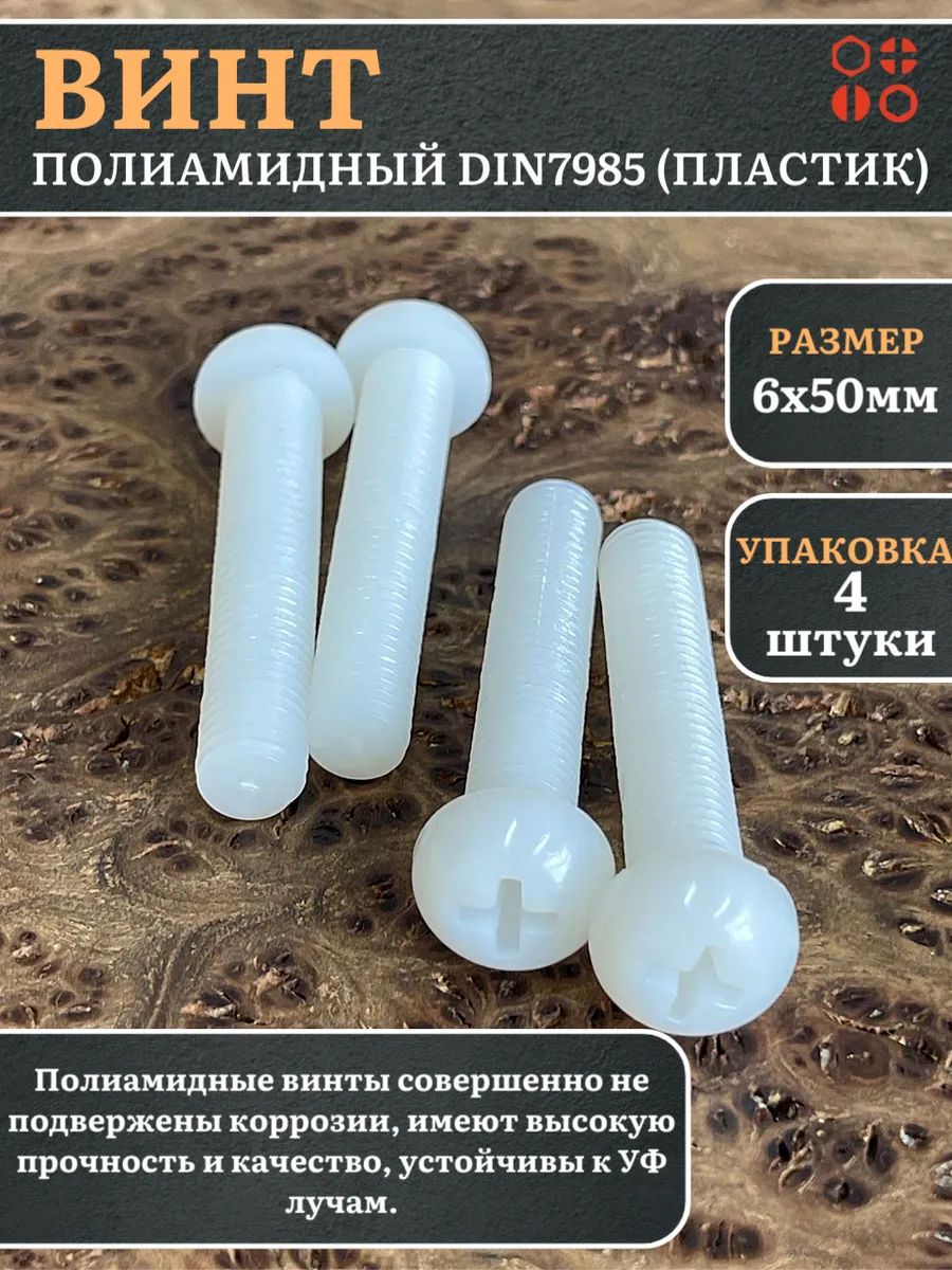 Винт полиамидный 6х50 мм DIN7985 (пластик), 4 шт.