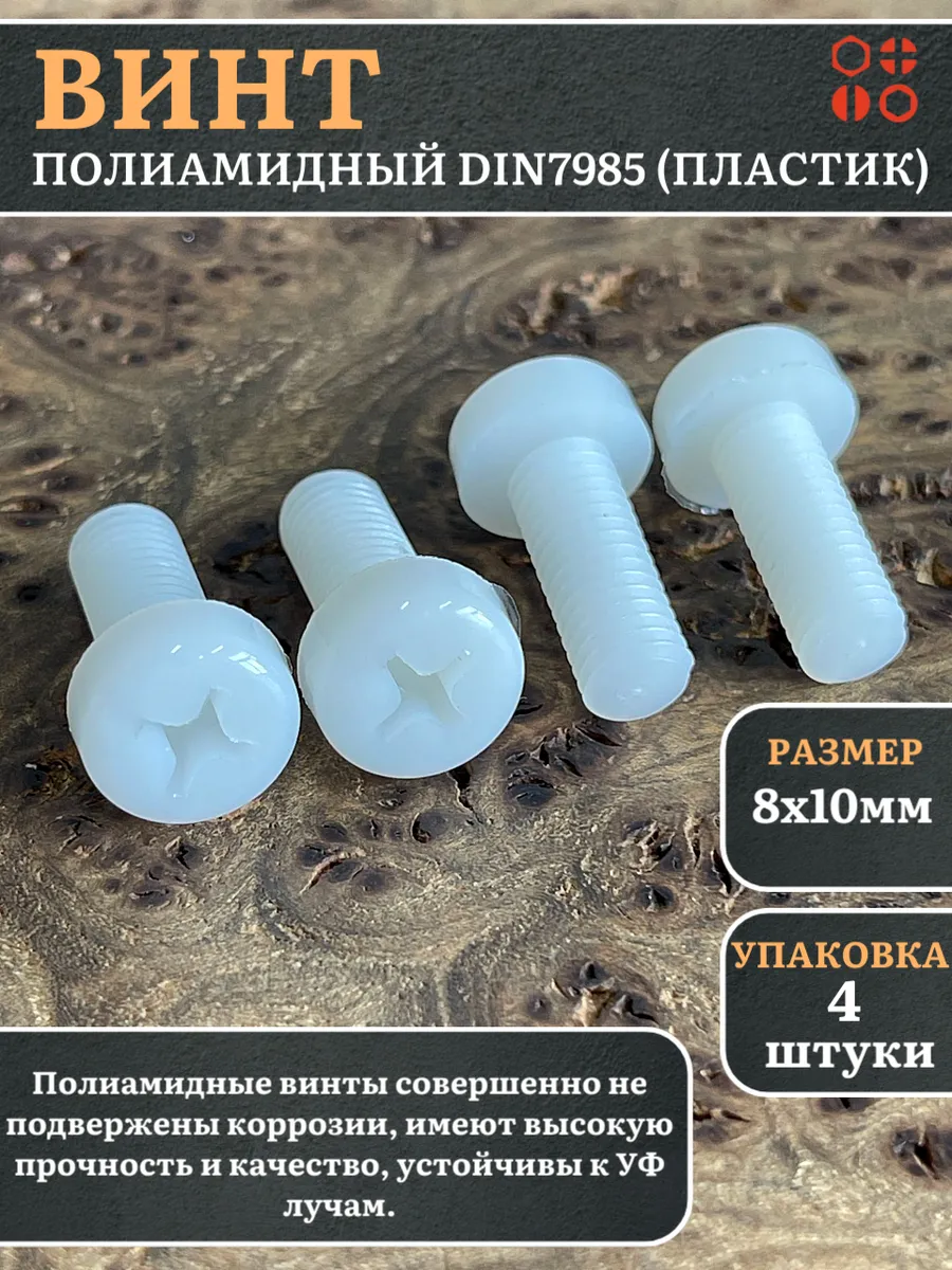 Винт полиамидный 8х10 мм DIN7985 (пластик), 4 шт.