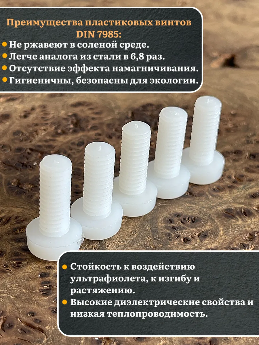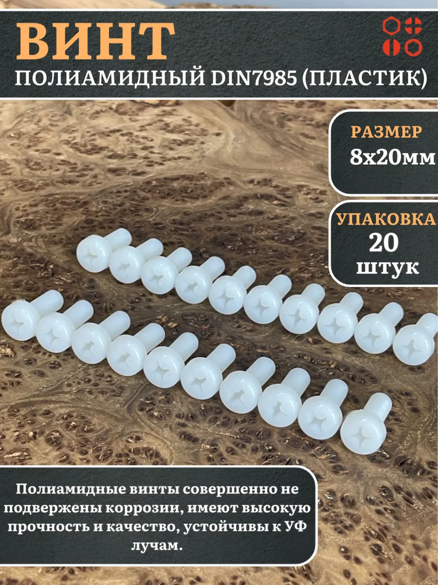 Винт полиамидный 8х20 мм DIN7985 (пластик), 10 шт. вп8207985ф10 1 шт.