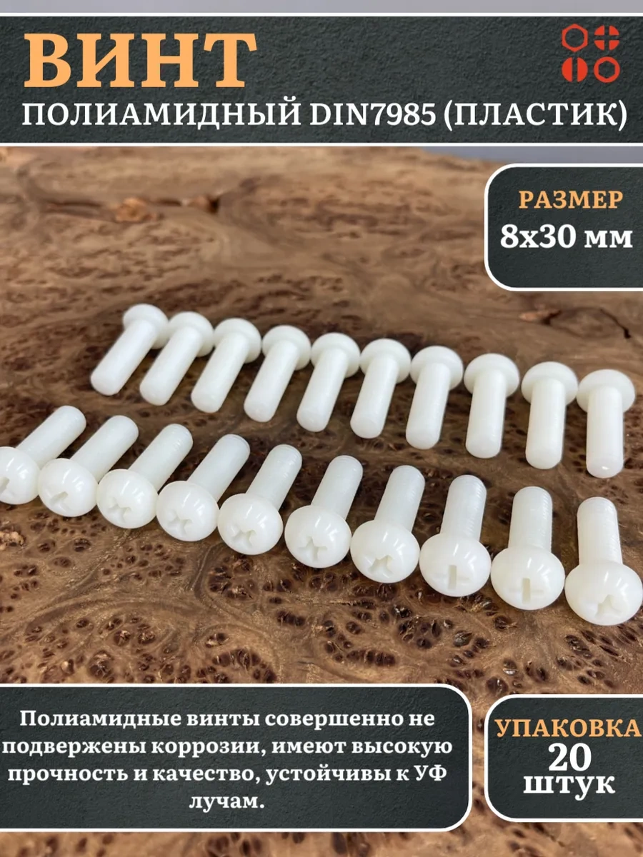 Винт полиамидный 8х30 мм DIN7985 (пластик), 20 шт.