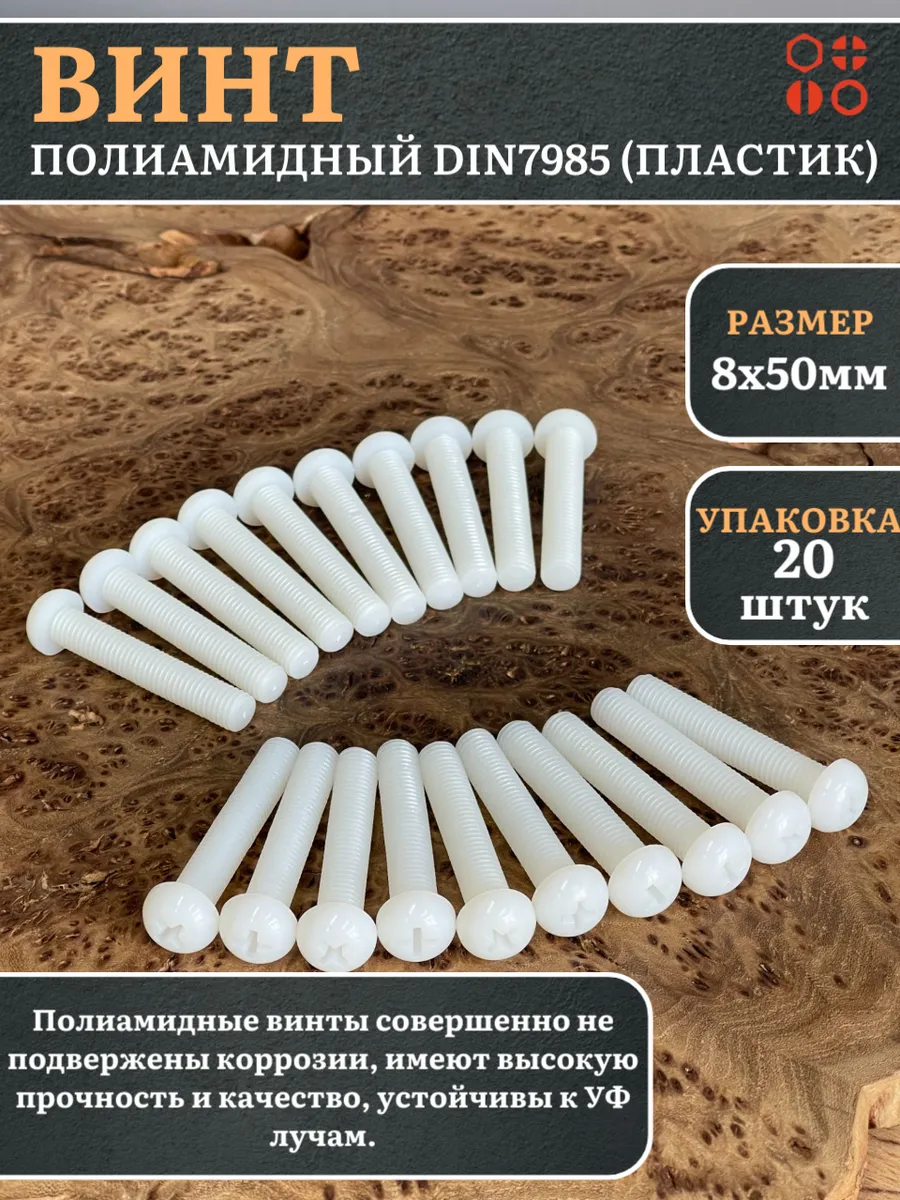 Винт полиамидный 8х50 мм DIN7985 (пластик), 50 шт. вп8507985ф50 1 шт.