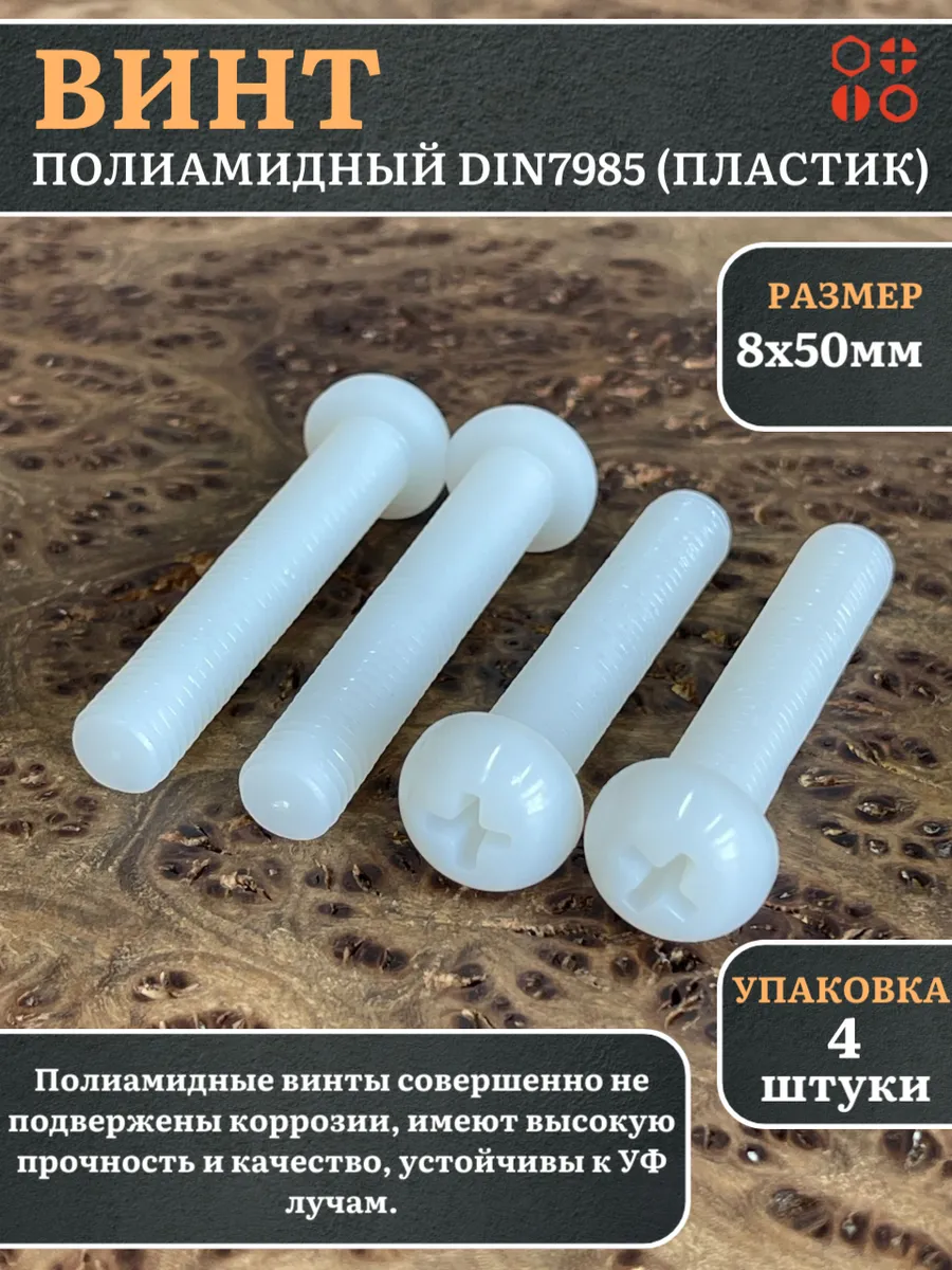Винт полиамидный 8х50 мм DIN7985 (пластик), 4 шт.