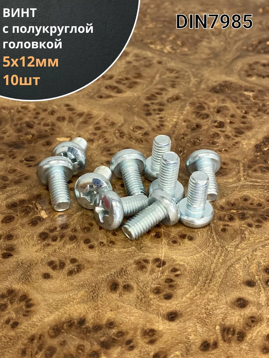 Винт с полукруглой головкой М5х12 ОЦ DIN7985, 10 шт.