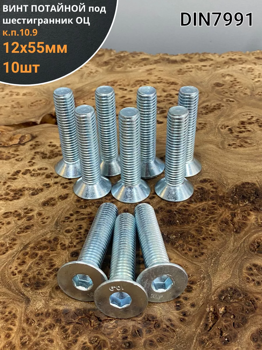 Винт потайной 12х55 под шестигранник ОЦ DIN7991к.п.10.9,10шт