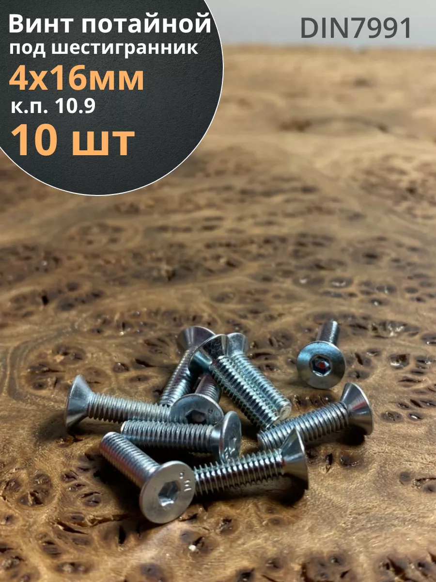 Винт потайной 4х16 под шестигранник ОЦ DIN7991,к.п.10.9 10шт