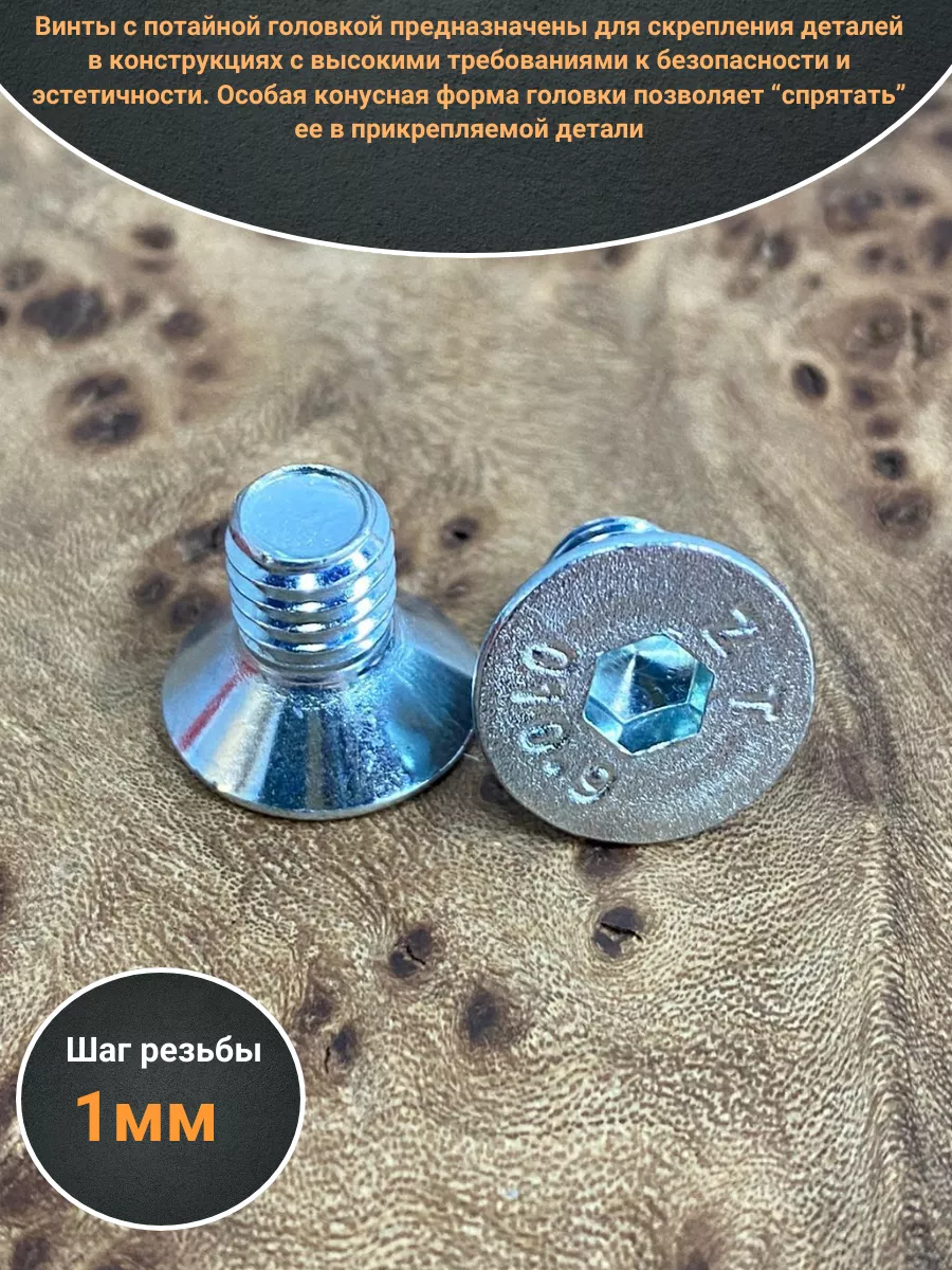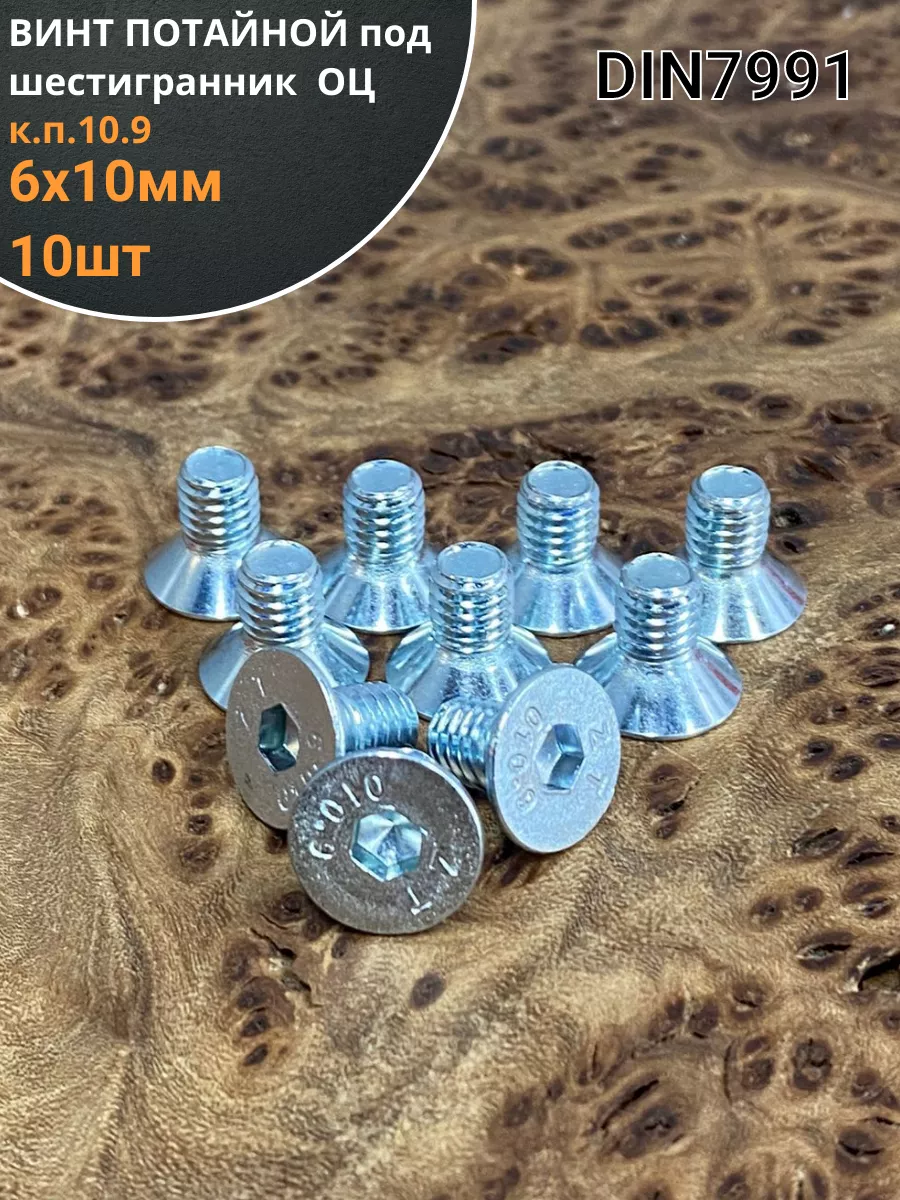 Винт потайной 6х10 под шестигранник ОЦ DIN7991 к.п.10.9,10шт