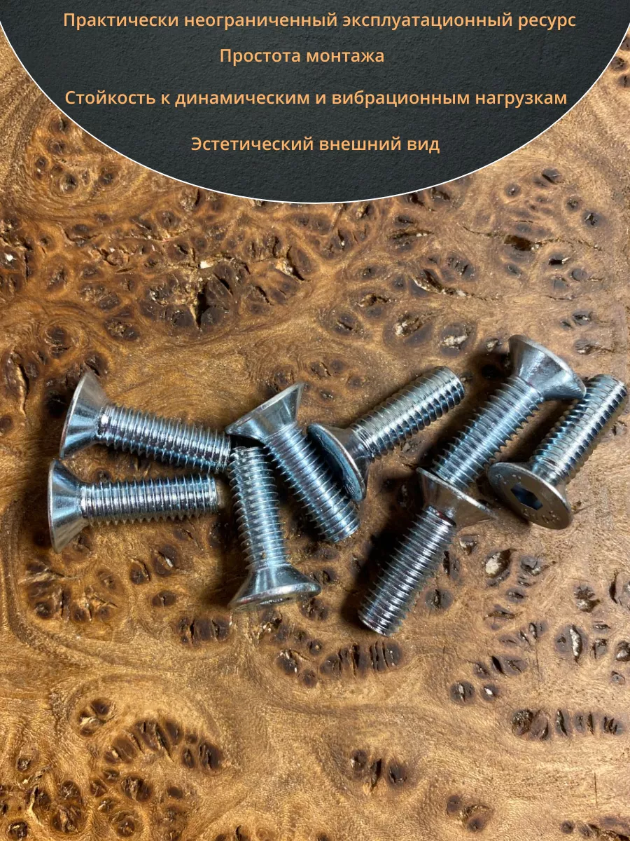 Винты с потайной головкой предназначены для скрепления деталей в конструкциях с высокими требованиями к безопасности и эстетичности. Особая конусная форма головки позволяет “спрятать” ее в прикрепляемой детали. При этом поверхность головки находится в одной плоскости с поверхностью детали. Крепёж с такими свойствами высоко востребован в машино-, автомобилестроении, при сборке бытовой техники, в приборостроении. Конструкция винта DIN 7991 включает стержень с метрической резьбой, потайную головку и шестигранное углубление под ключ для передачи крепежному изделию крутящего момента. Шестигранный внутренний диаметр углубления дает возможность подавать гораздо большее усилие при установке в контакте с ключом или битой. Винты DIN 7991 могут изготавливаться из углеродистых и легированных сталей