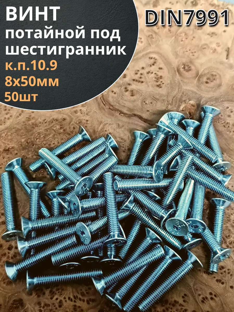 Винт потайной 8х50 под шестигранник ОЦ DIN7991к.п.10.9,50шт.